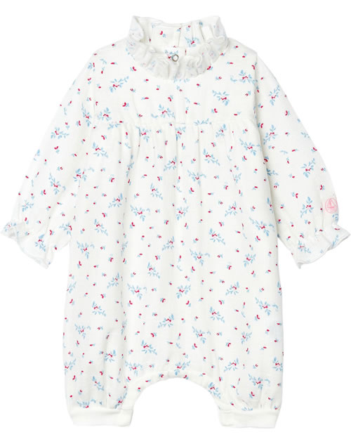 Kuscheliger Strampler in rosa mit hübschem floralem Muster von PETIT BATEAU für Mädchen.