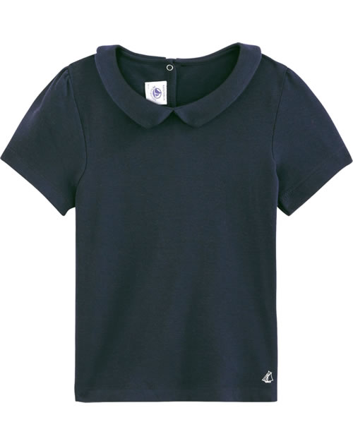 Petit Bateau Mädchen T-Shirt mit Bubi-Kragen Kurzarm smoking