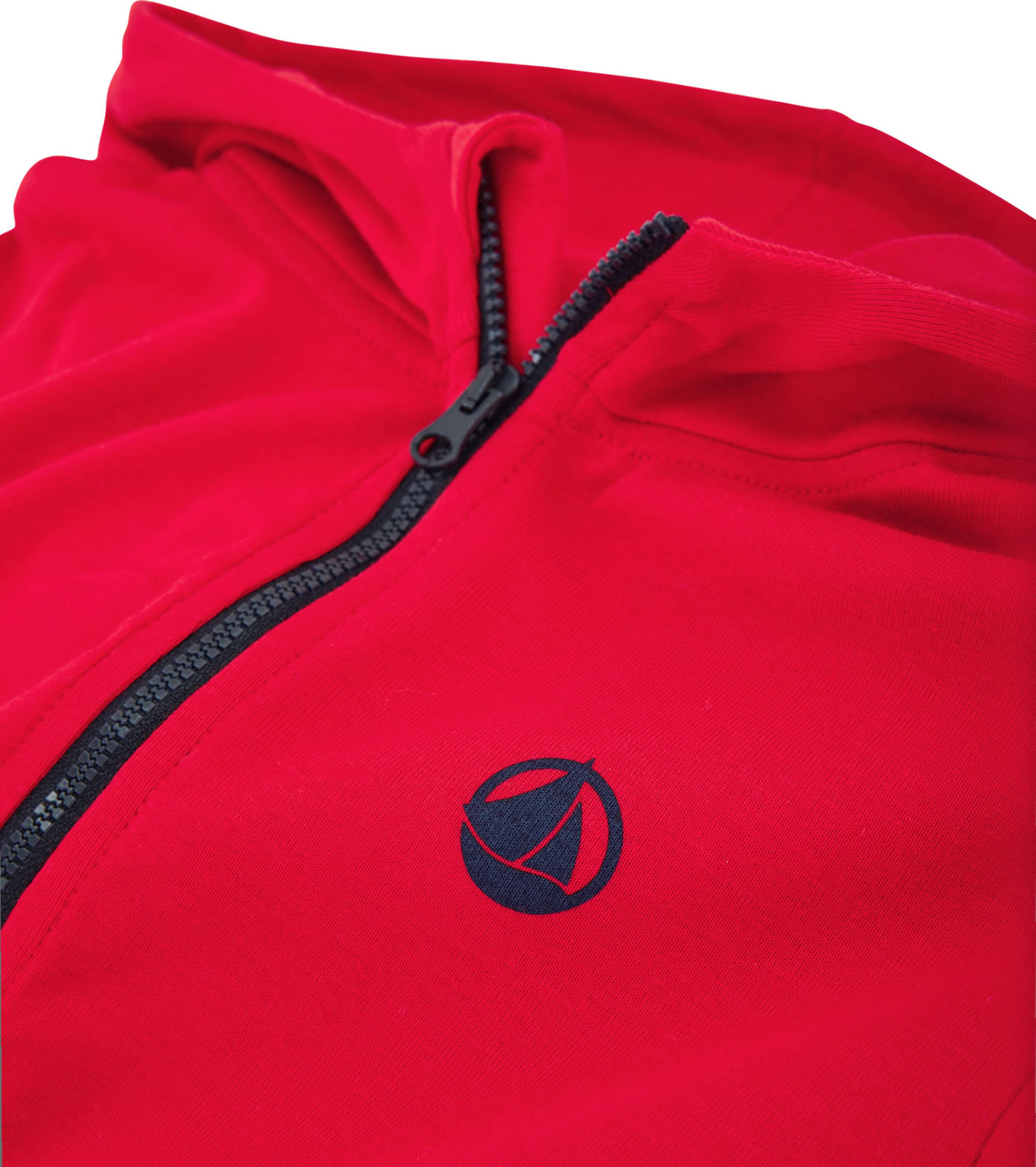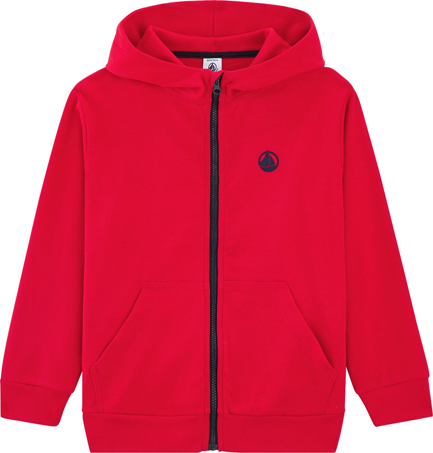 Knallige Sweat-Jacke mit Kapuze für Jungen in rot von PETIT BATEAU. Tolle Details wie das runde Petit Bateau-Label auf der Brust sowie die kontrastfarbene Reißverschlussöffnung runden den Look ab.