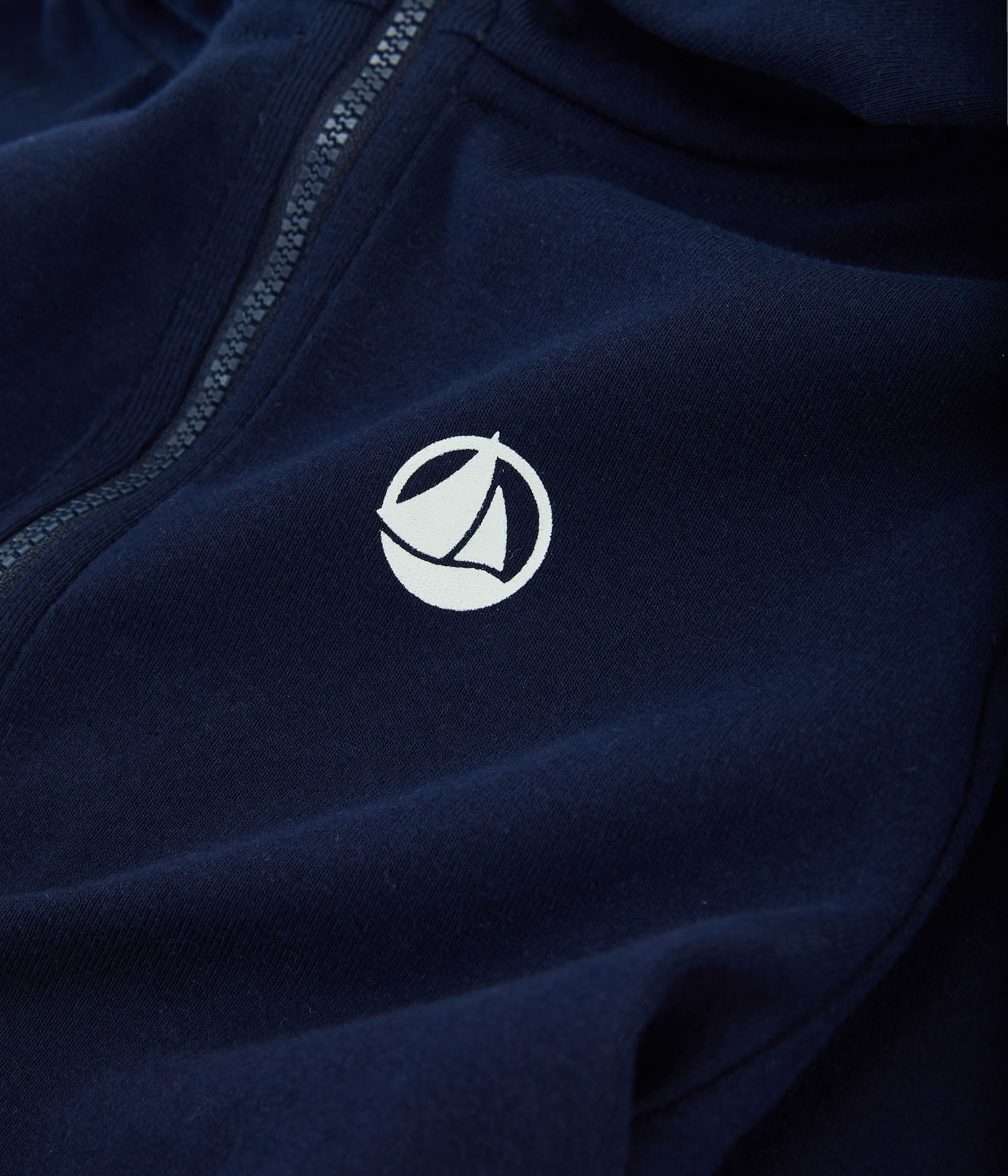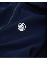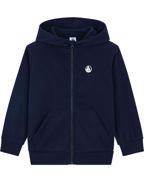 Dunkelblaue Sweat-Jacke mit Kapuze für Jungen von PETIT BATEAU. Tolle Details wie das runde Petit Bateau-Label auf der Brust sowie die kontrastfarbene Reißverschlussöffnung runden den Look ab.