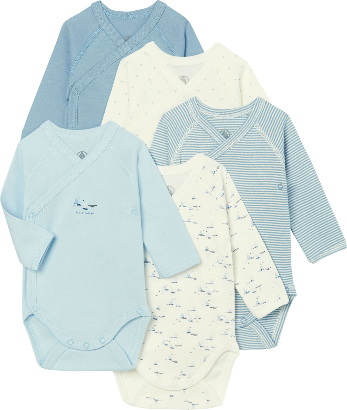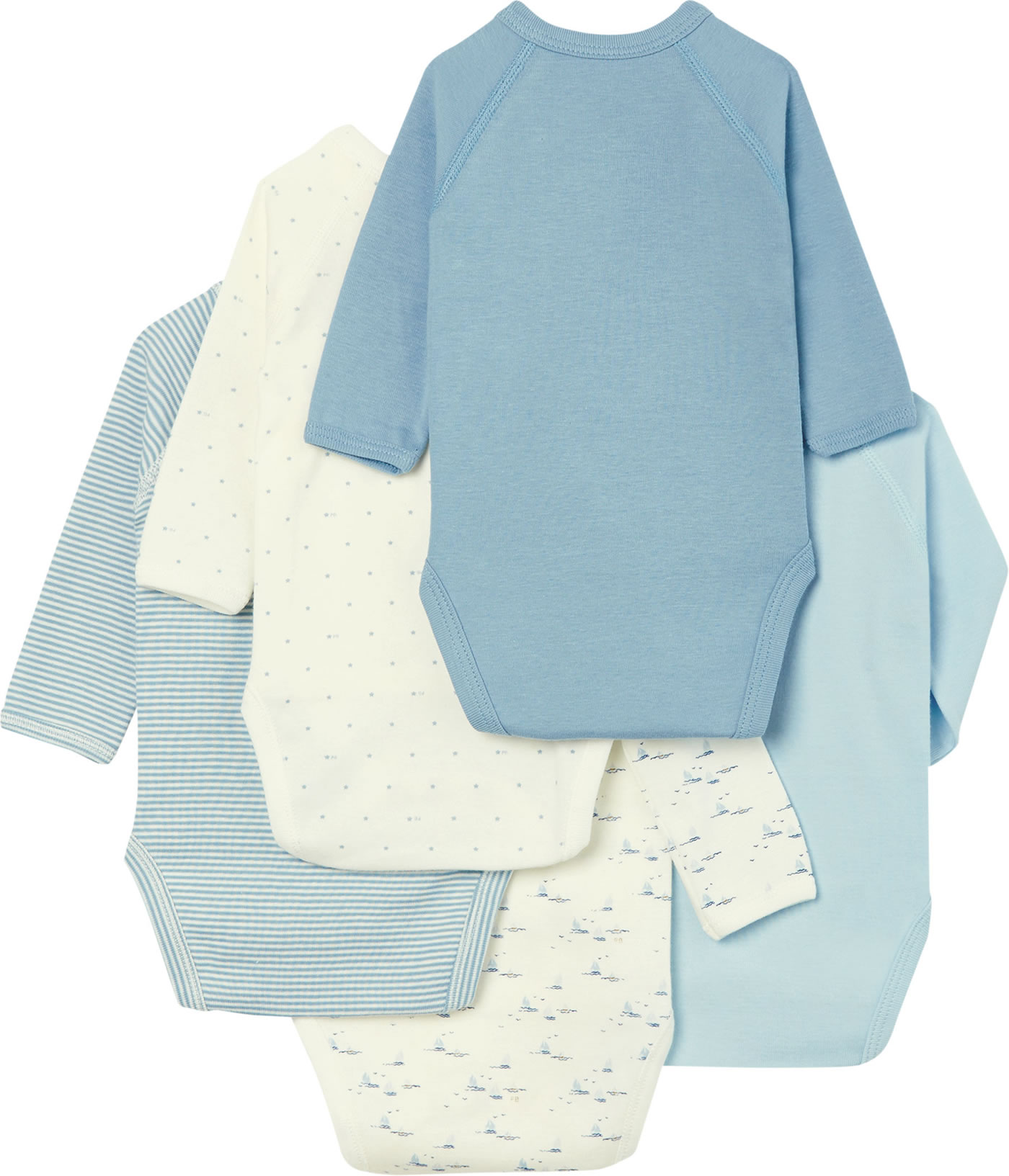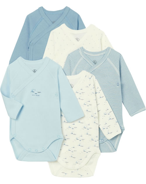Petit Bateau Wickel-Body Langarm 5er Set Boote Sterne creme/blau