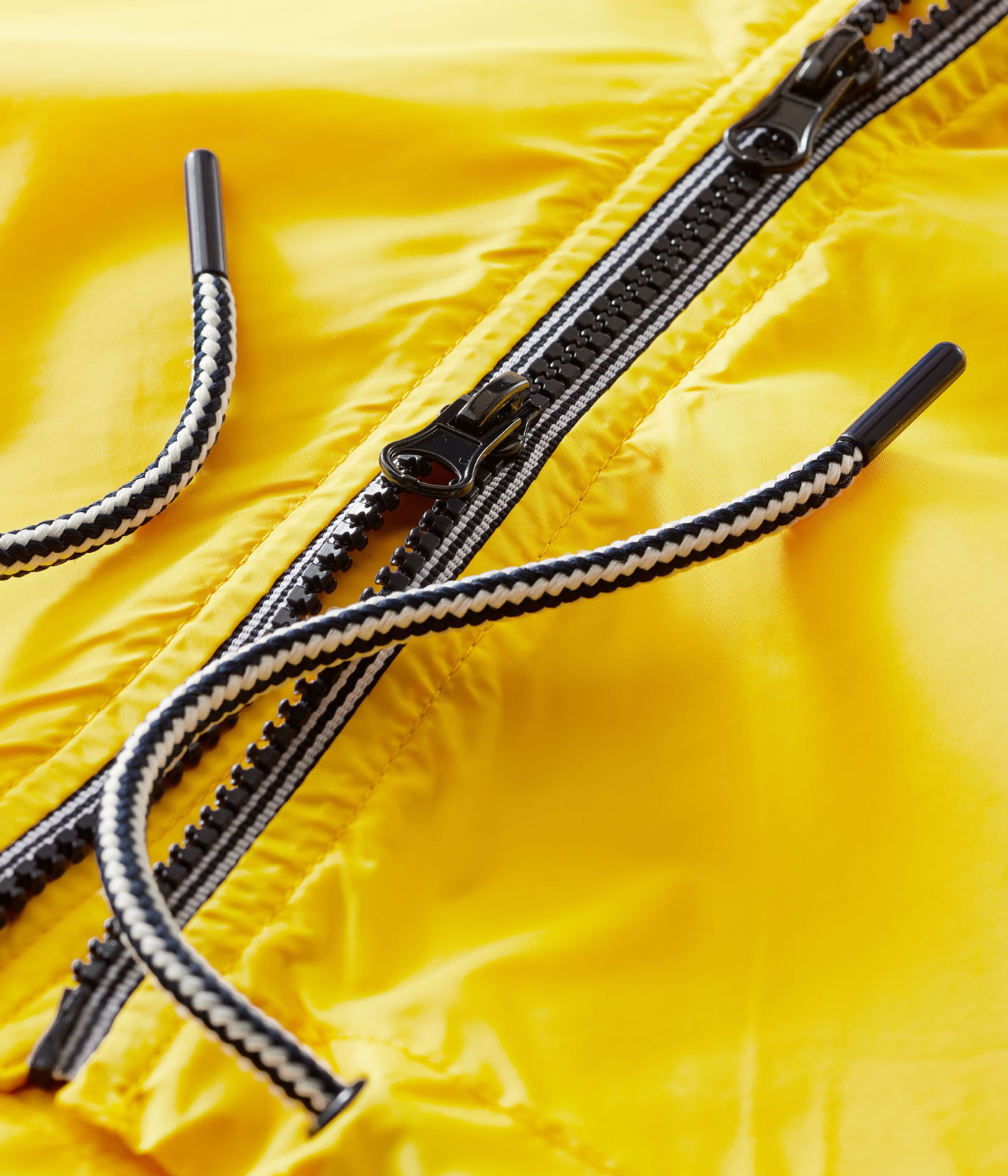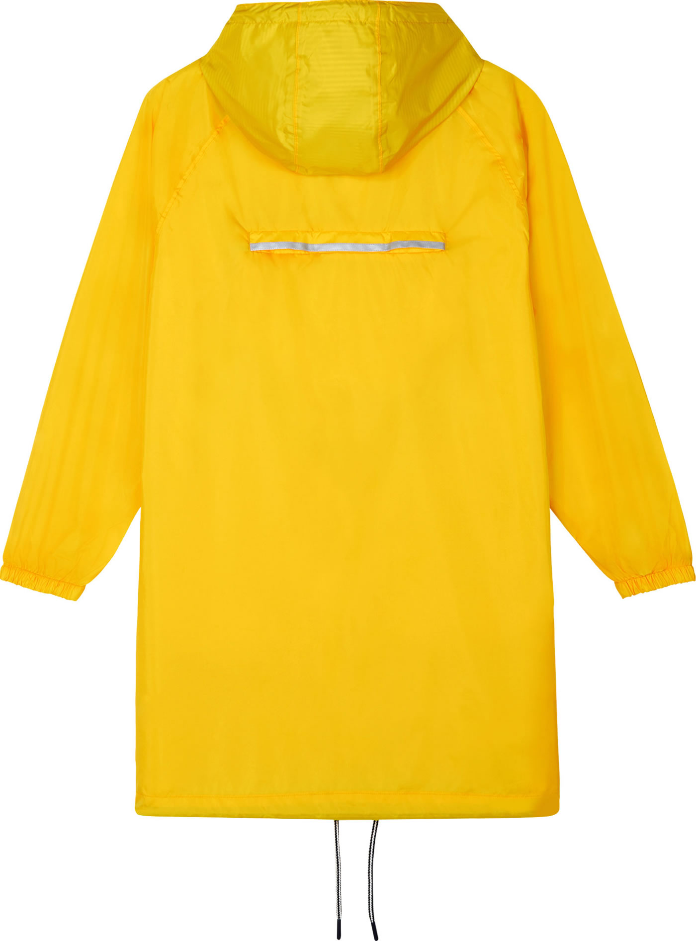 Die dünne Damen-Regenjacke in gelb aus wasserabweisendem PU von PETIT BATEAU ist ein toller Begleiter für Regentage. Die Kapuze der gerade geschnittenen Jacke ist mit einem maritim gestreiften Muster versehen. Zusätzlich ist das kleine Petit Bateau Logo an der linken Brust abgebildet. Zwei Bänder an der Kapuze und am Saum regeln die Weite. Zwei große Eingrifftaschen auf der Vorderseite bieten Platz für Schlüssel, Handy und was man sonst noch an einem Tag im Freien oder beim Bummeln in der City braucht. Die praktische Overcoat-Form ermöglicht es, die Jacke über einem Mantel oder einer anderen Jacke zu tragen. Dank der Klett-Rückentasche lässt sich der ultraleichte Regenmantel schnell und platzsparend verstauen.