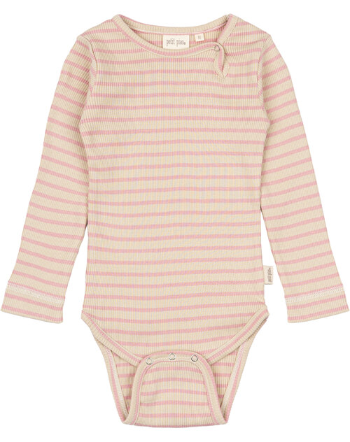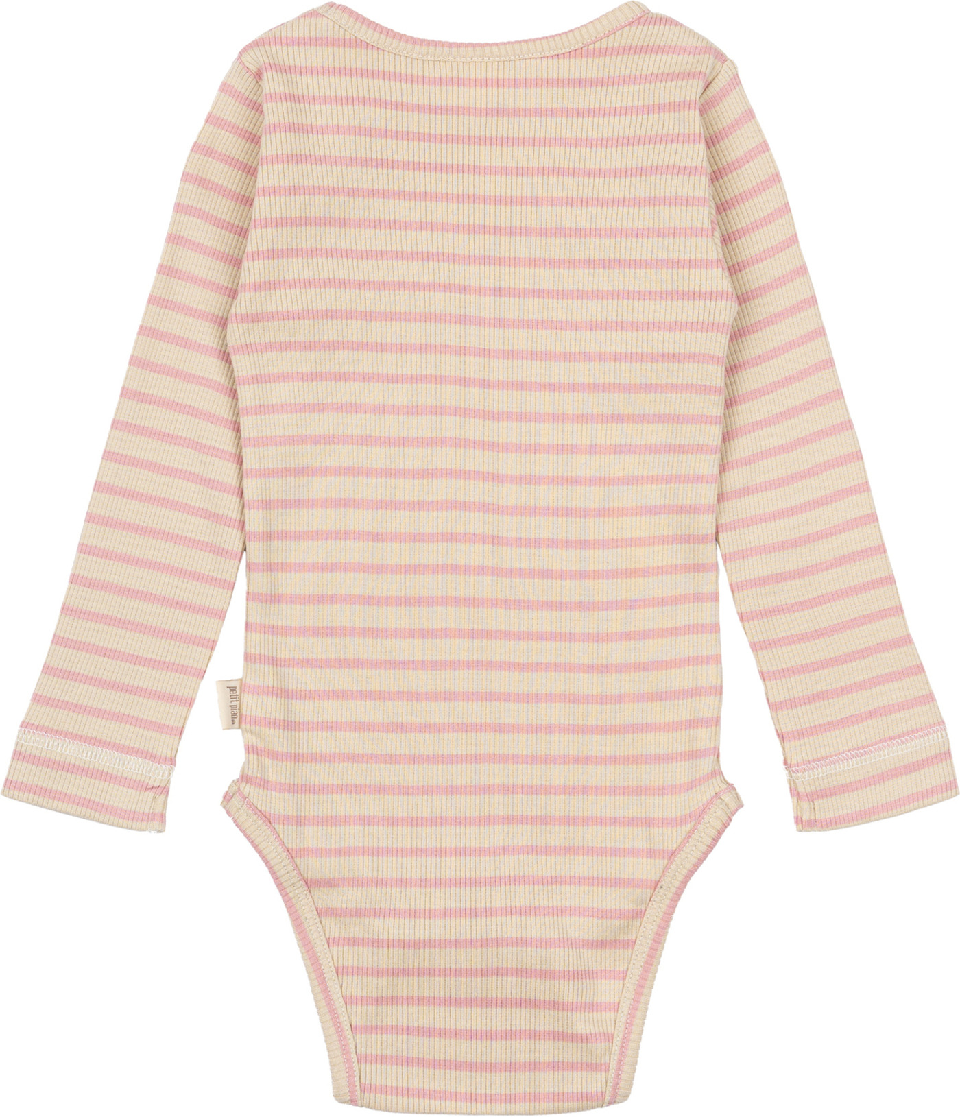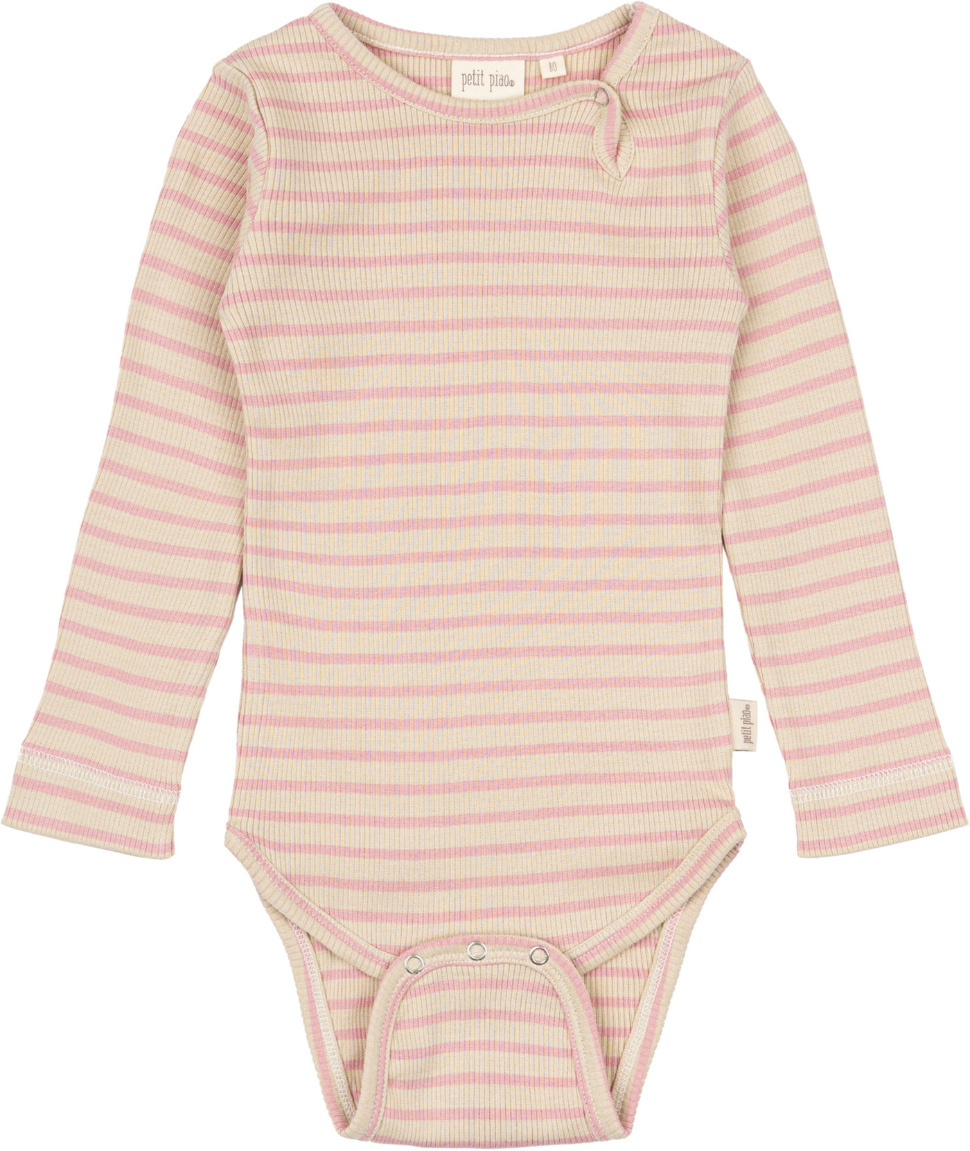 Petit Piao Langarmbody in Rippoptik aus Modal/Baumwolle - Bright Rose/Dark Off White
