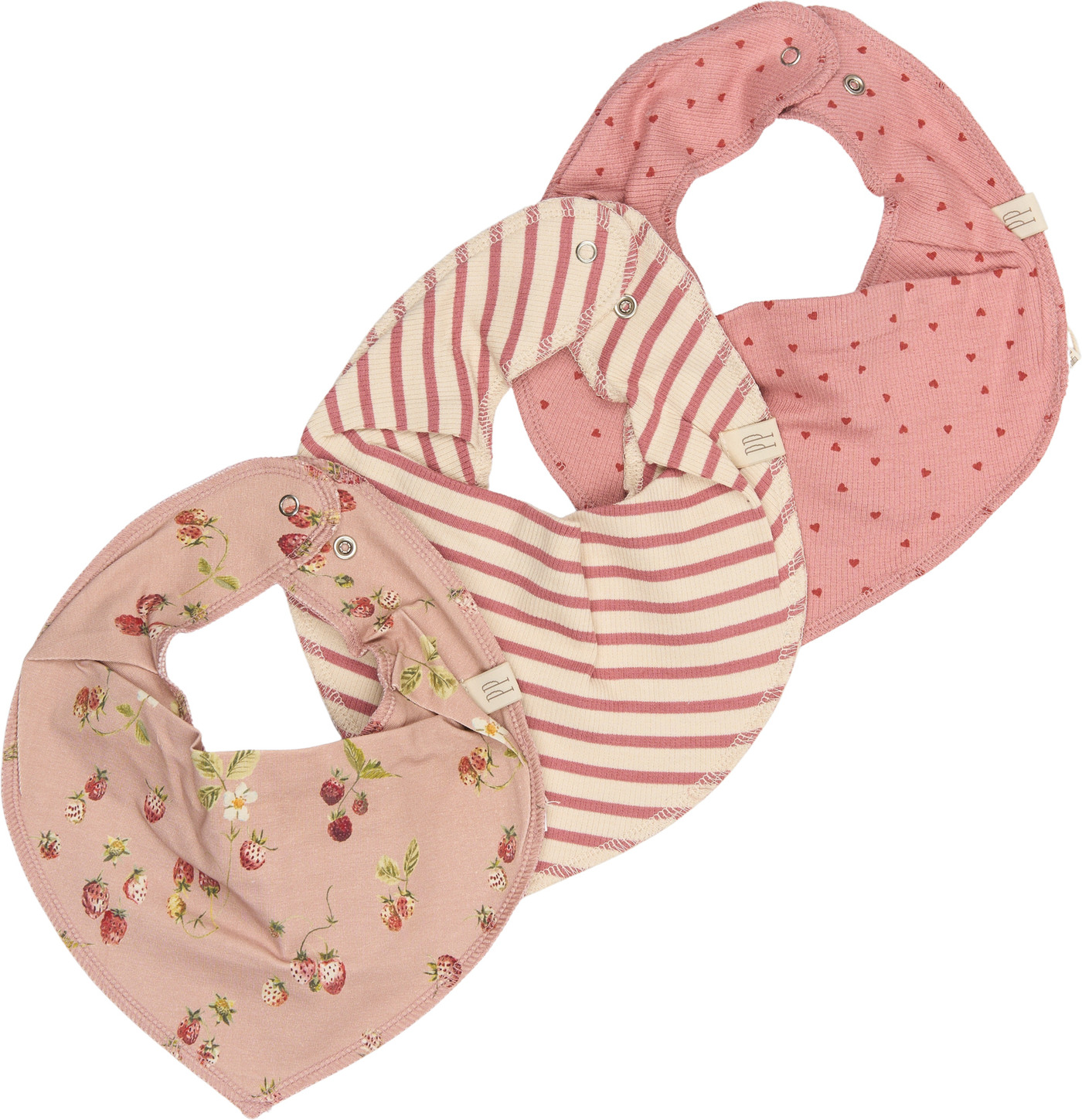 Petit Piao Dreieckstücher im 3er-Pack aus Bio-Baumwolle (und Modal) SKY - Dusty Rose Striped