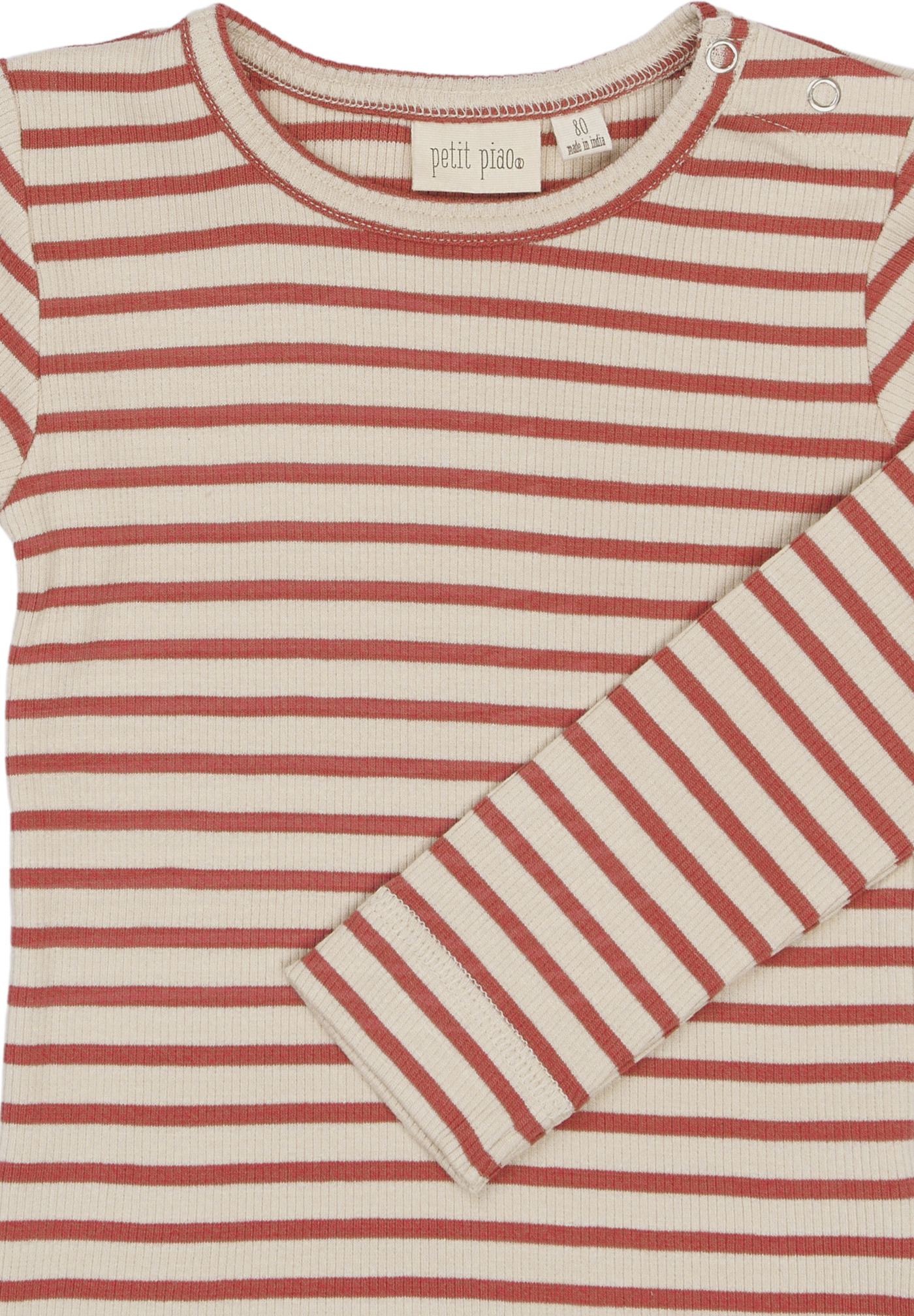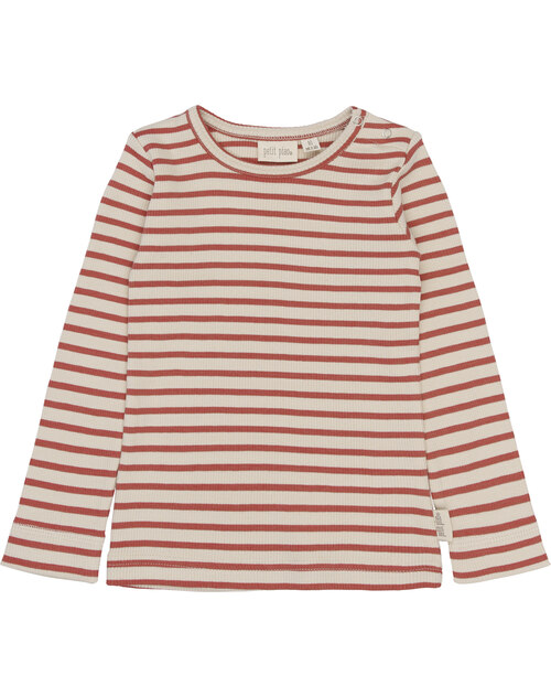 Petit Piao Langarmshirt in Rippoptik aus Bio-Baumwolle und Modal SKY - Cinnabar Striped