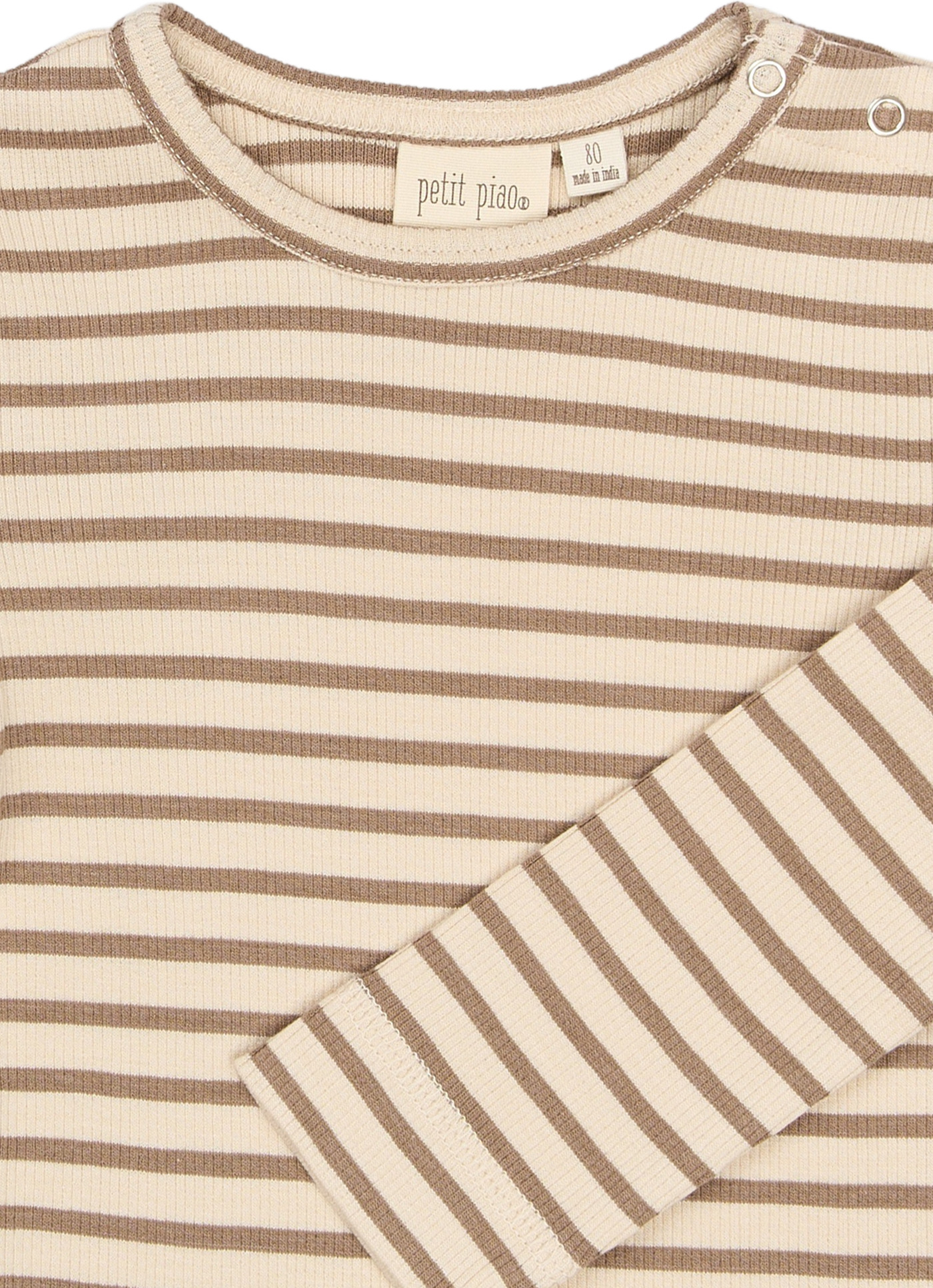 Petit Piao Langarmshirt in Rippoptik aus Bio-Baumwolle und Modal SKY - Ginger Snap Striped