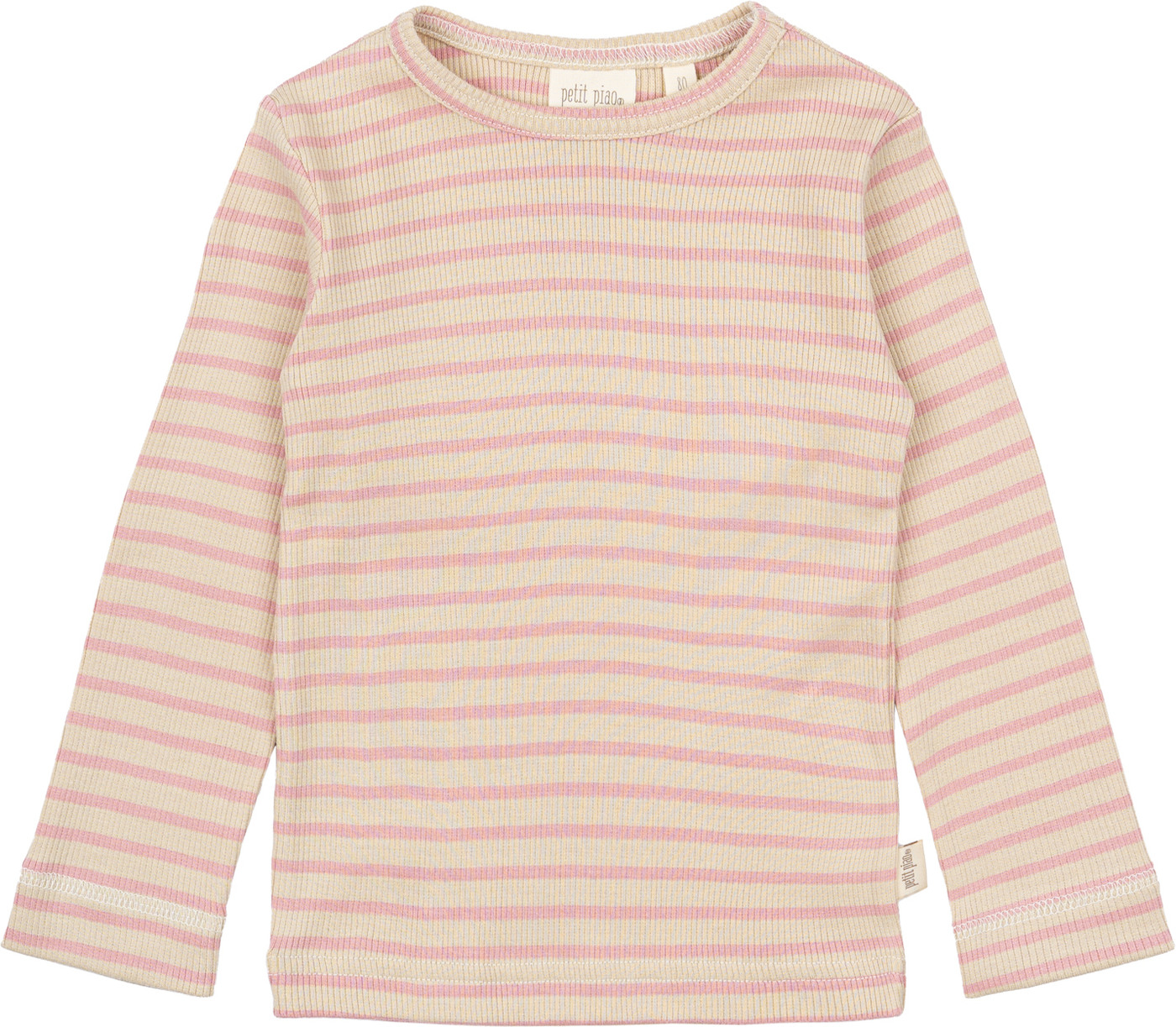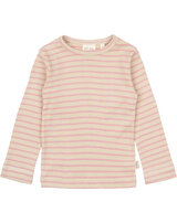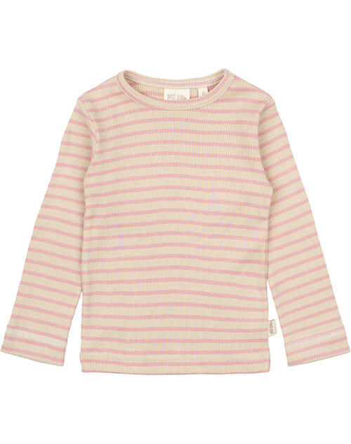 Petit Piao Langarmshirt in Rippoptik aus Modal/Baumwolle - Bright Rose/Dark Off White