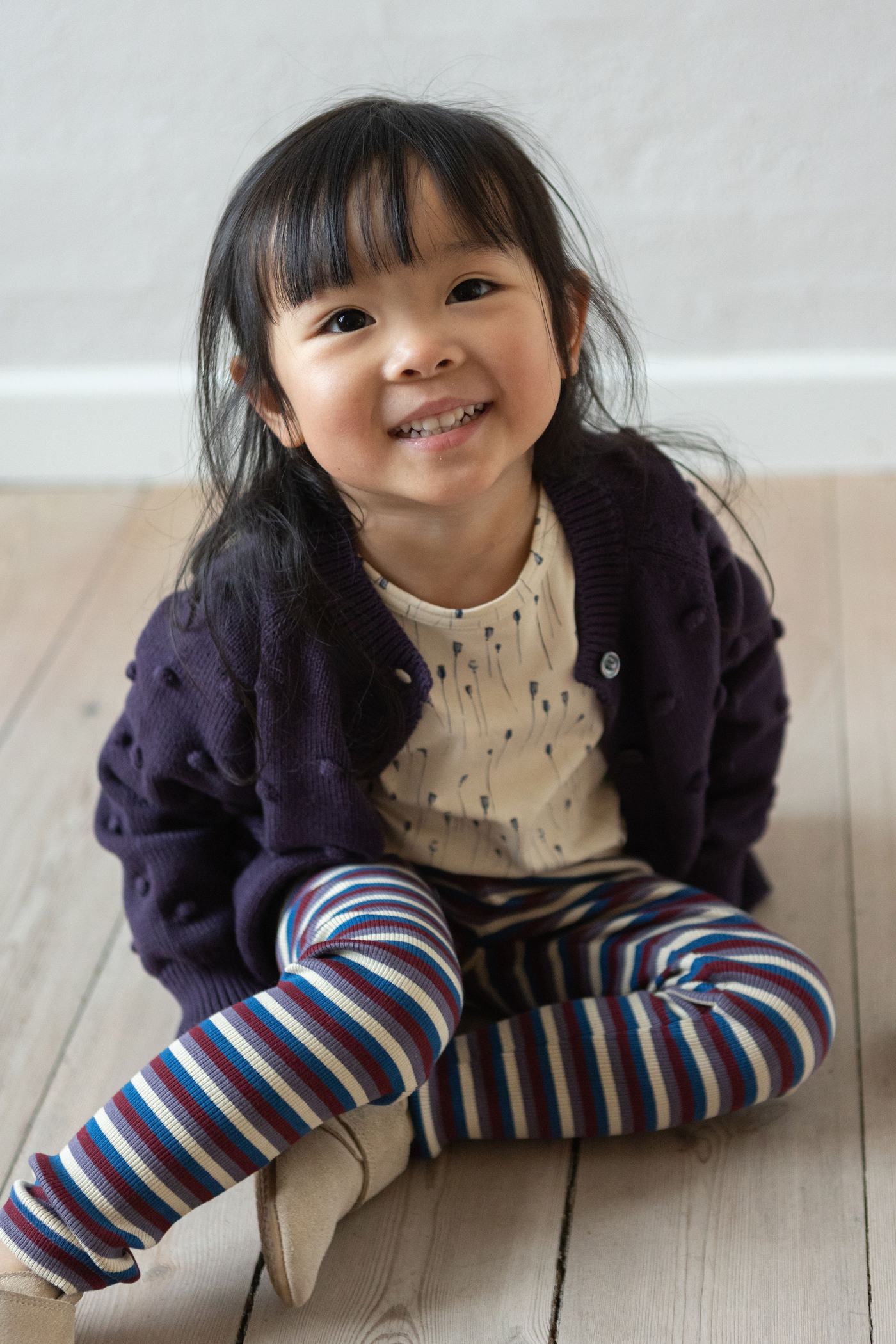 Petit Piao Leggings in Rippoptik aus Modal/Baumwolle - Dark Cherry Multi Stripes