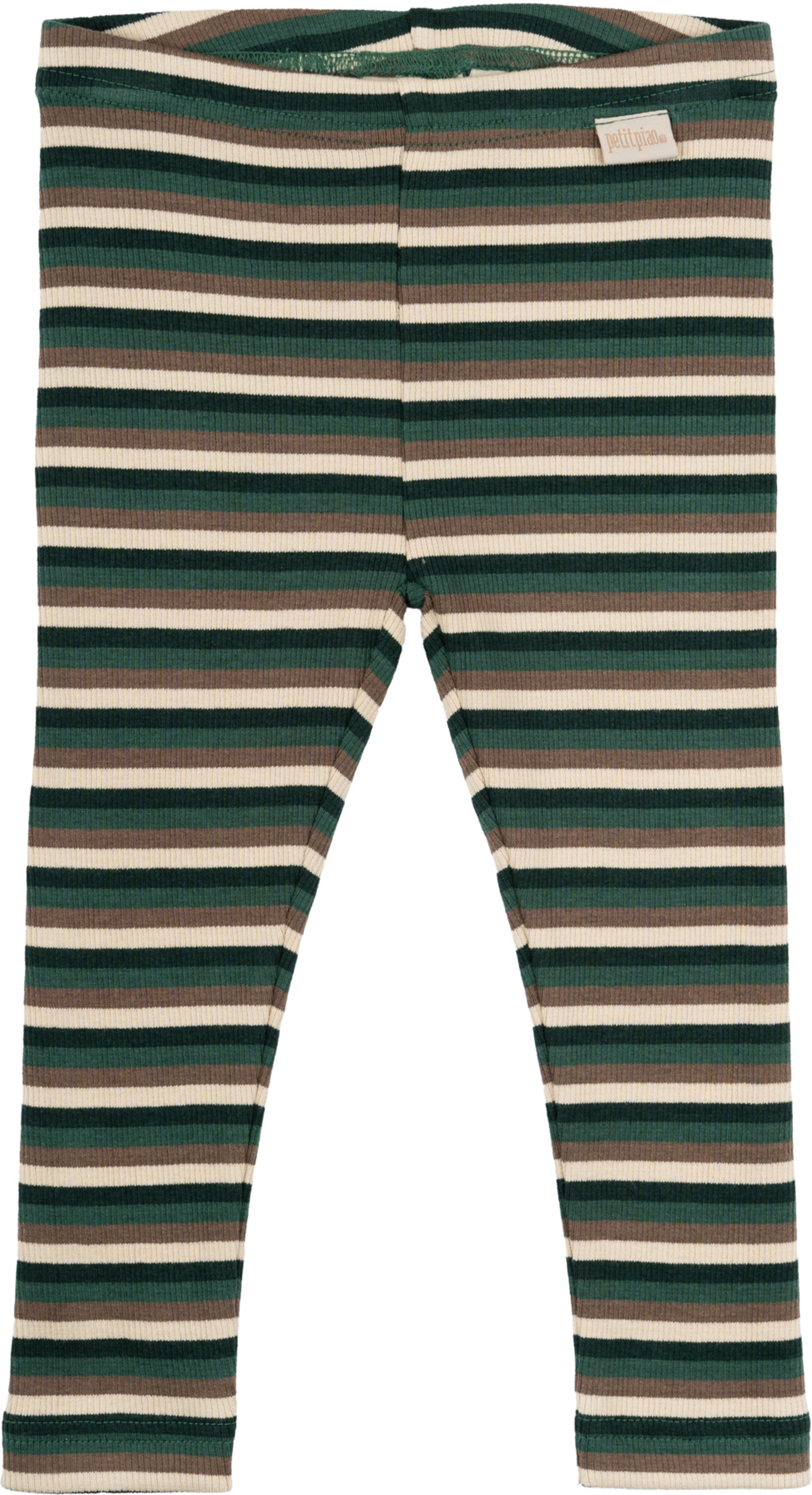 Petit Piao Leggings in Rippoptik aus Modal/Baumwolle - Emerald Green Multi Stripes
