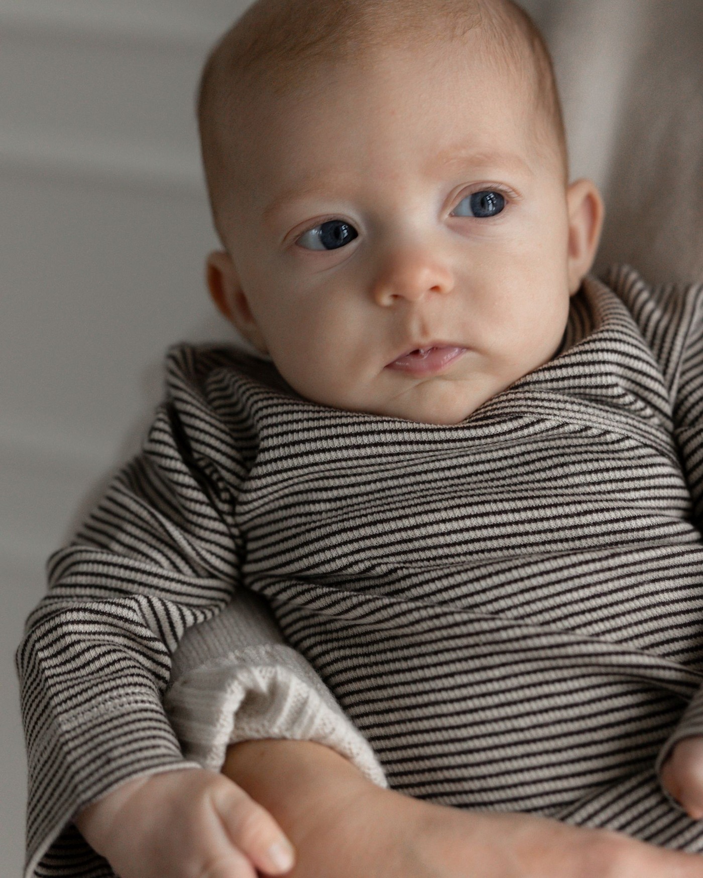 Der Body weist eine Rippoptik auf und ist rundum gestreift - ein zeitloses Design. 🤎