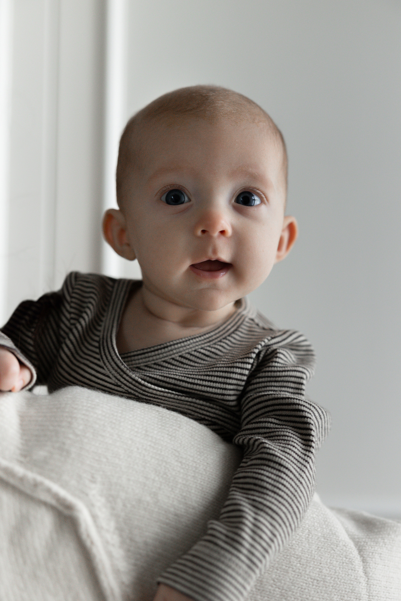 Dieser bequeme Langarm Wickel-Body von Petit Piao ist besonders weich und anschmiegsam und so ideal für aktive Babys und Kleinkinder.