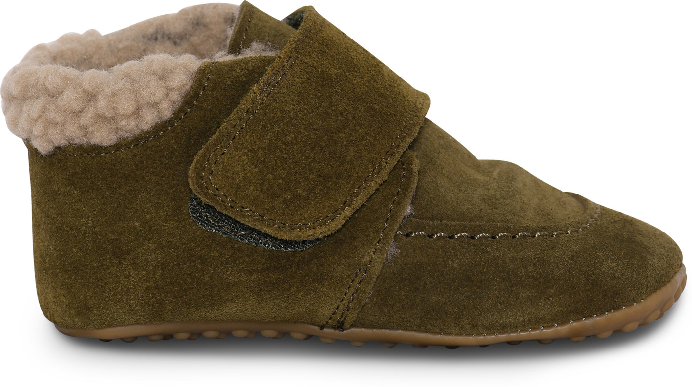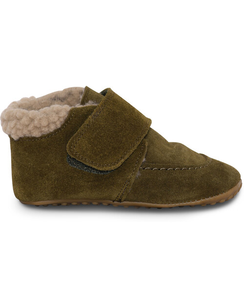 Das Außenmaterial besteht aus weichem Wildleder, innen wärmen die Schühchen mit kuscheligem Textilfutter.