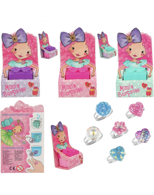 In der kleinen Schachtel verbirgt sich einer von den schönsten Ringen, die Princess Mimi hat. Aber die Schachtel läßt sich nicht so einfach öffnen. Nur mit einem magischen Trick: Das Geschenk wird in Wasser gelegt, löst sich auf und es kommt ein wunderschöner Ring zum Vorschein.