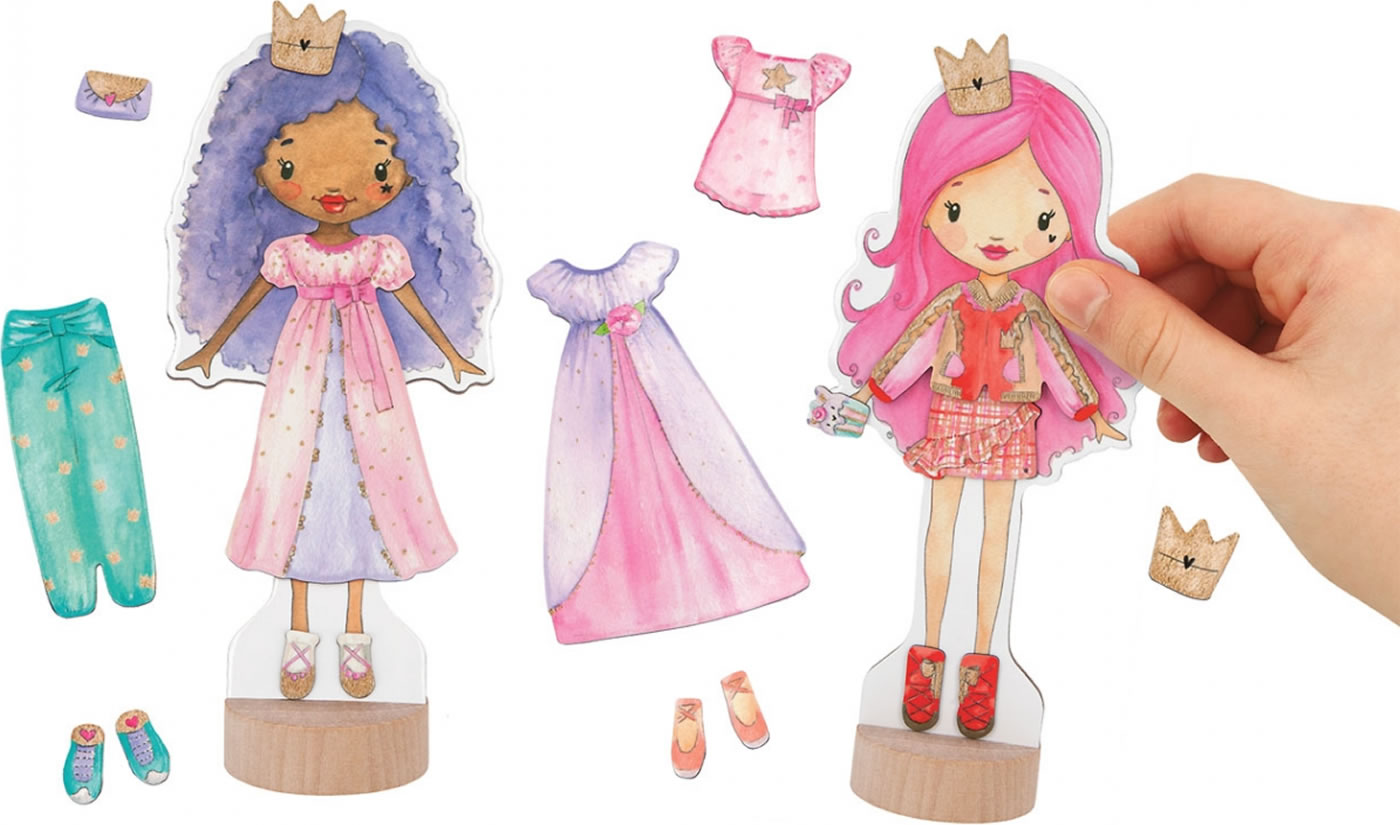 Hilf Prinzessin Mimi und ihrer Freundin Prinzessin Lulu beim Anziehen. Aus 35 Teilen kannst du ihnen ein hübsches Outfit zusammenstellen.