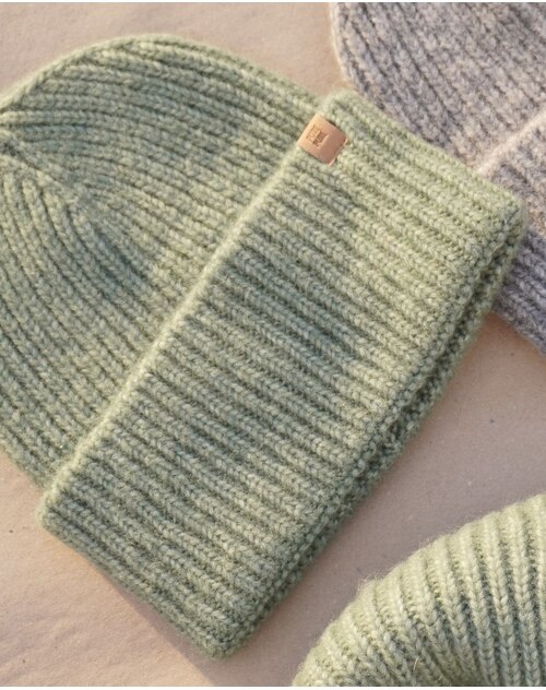 Pure Pure by Bauer Damen-Rippmütze aus Baby-Alpaka, Merinowolle & Baumwolle - Salbei