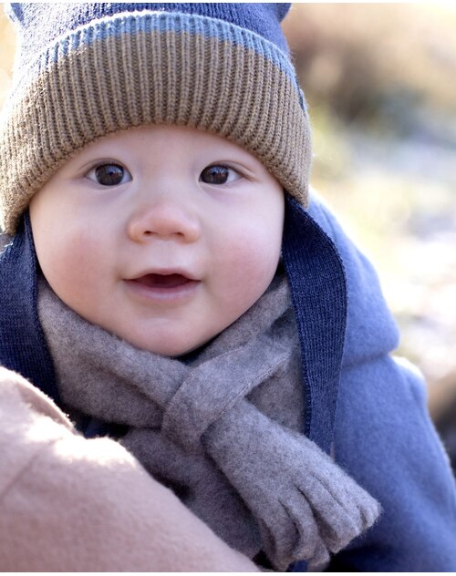 Kuschelig warm durch kalte Tage kommen Kinder mit diesem superweichen und federleichten Fleece-Schal aus reiner Bio-Merinowolle.