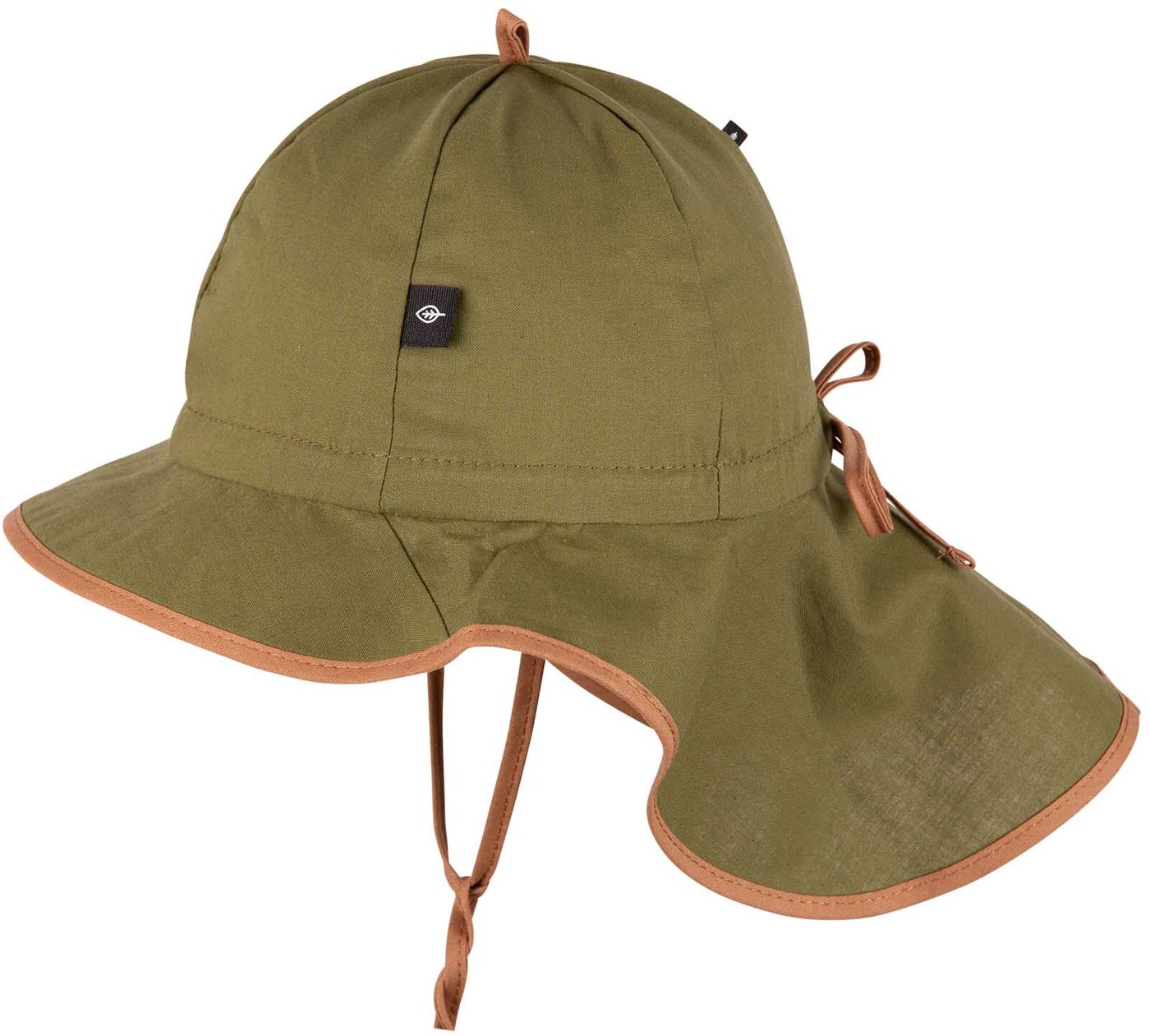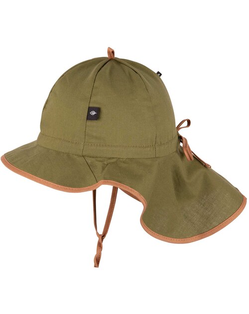 Bindebänder unter dem Kinn sorgen dafür, dass der Sonnenhut auch beim Spielen sicher auf dem Kopf bleibt, während der