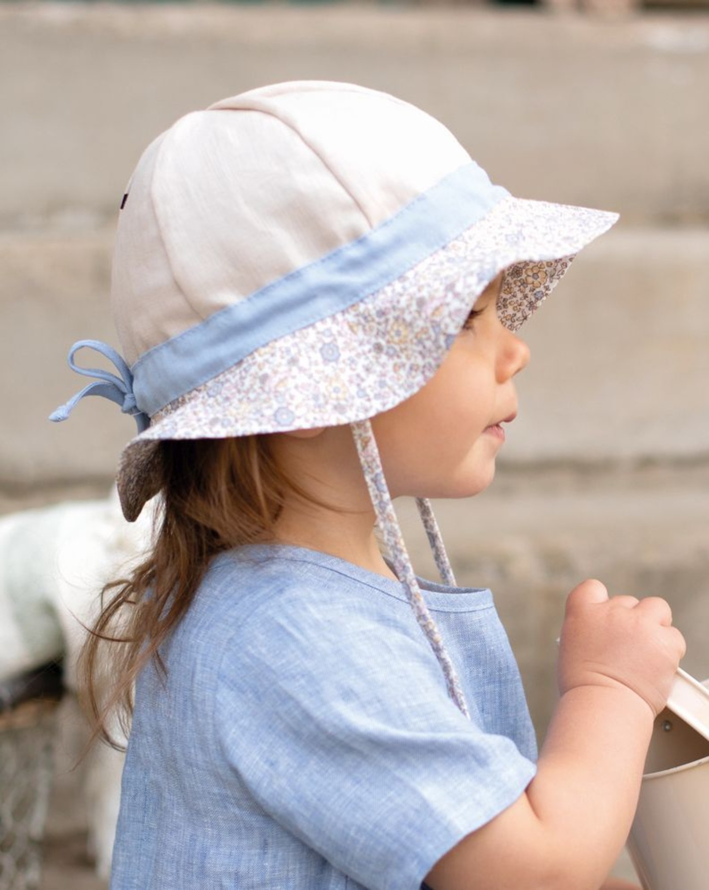 Bindebänder unter dem Kinn sorgen zusätzlich dafür, dass der Hut auch beim Spielen sicher auf dem Kopf bleibt 🌞🌿