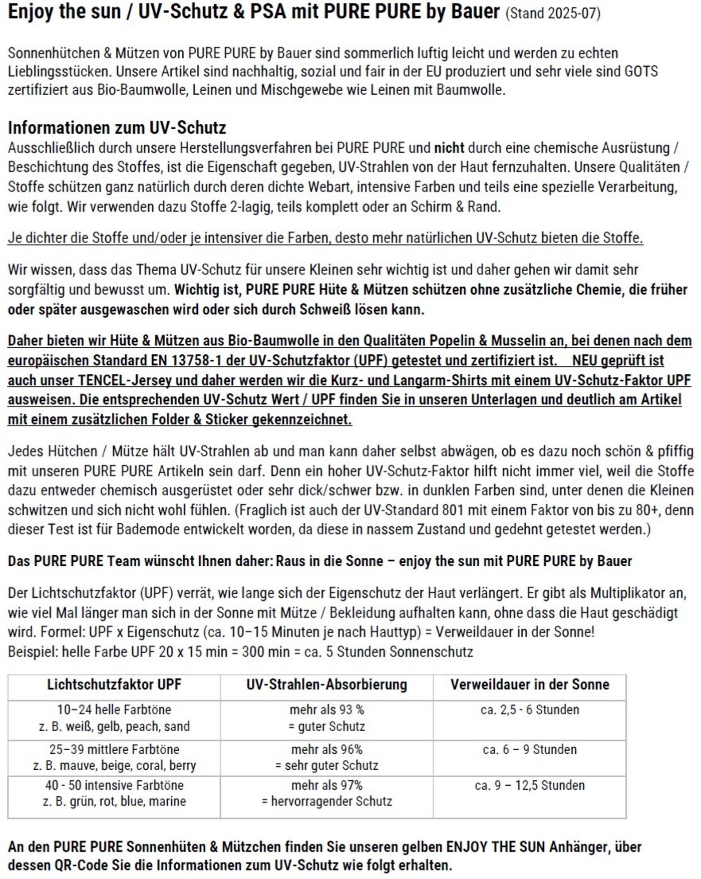Hinweis: Je dunkler die Farbe eines Stoffes ist, desto besser kann er UV-Strahlen absorbieren - und desto höher ist in der Regel der Sonnenschutz 🛡️