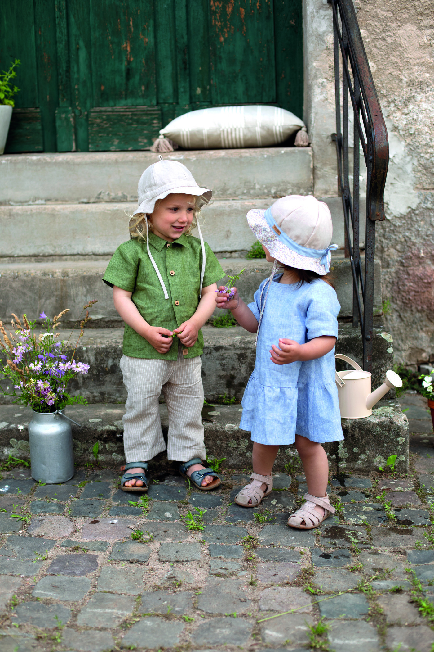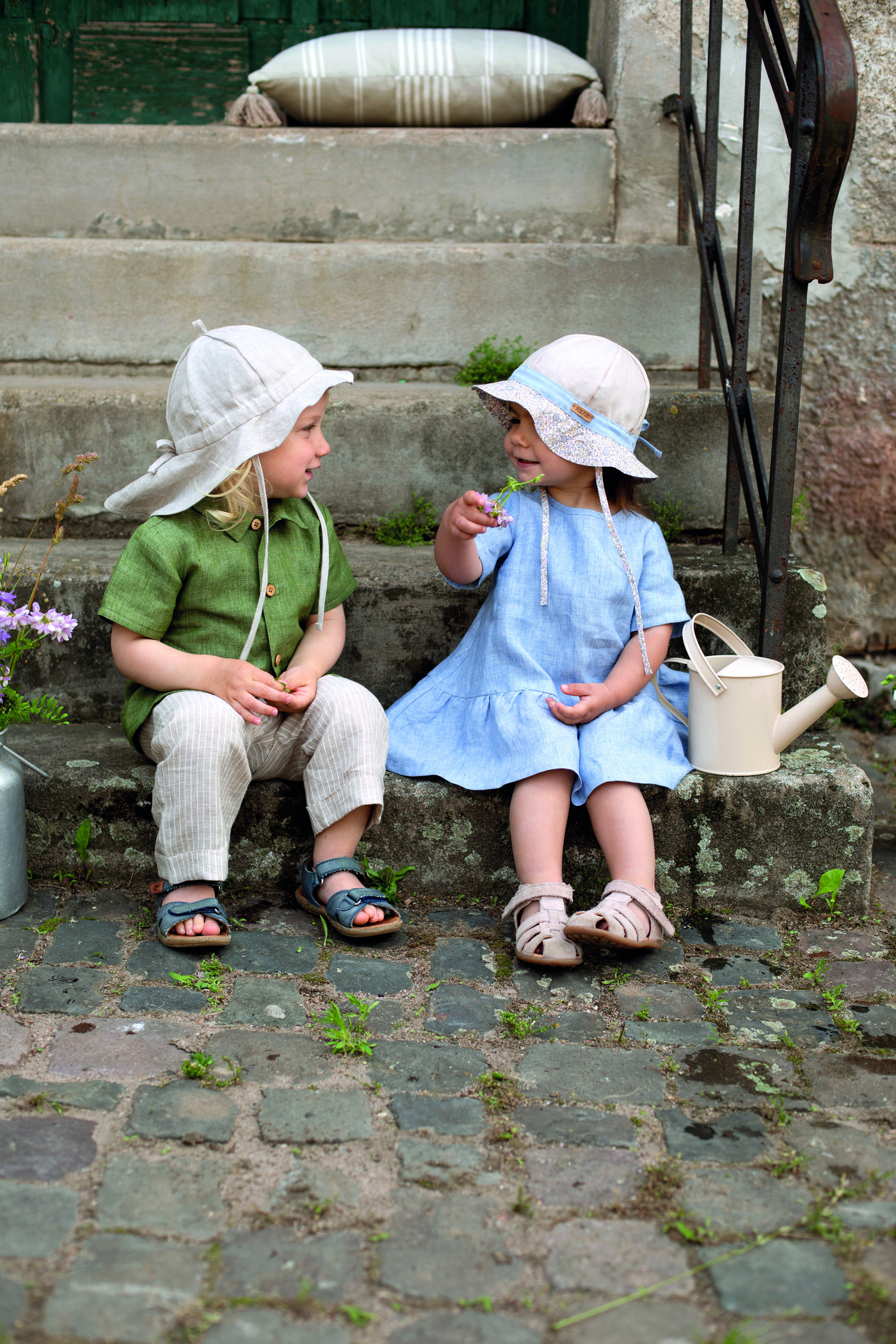 zarte Design in natürlichen, sanften Farben macht den Hut zu einem echten Hingucker und passt wunderbar zu sommerlichen Kinder-Outfits.