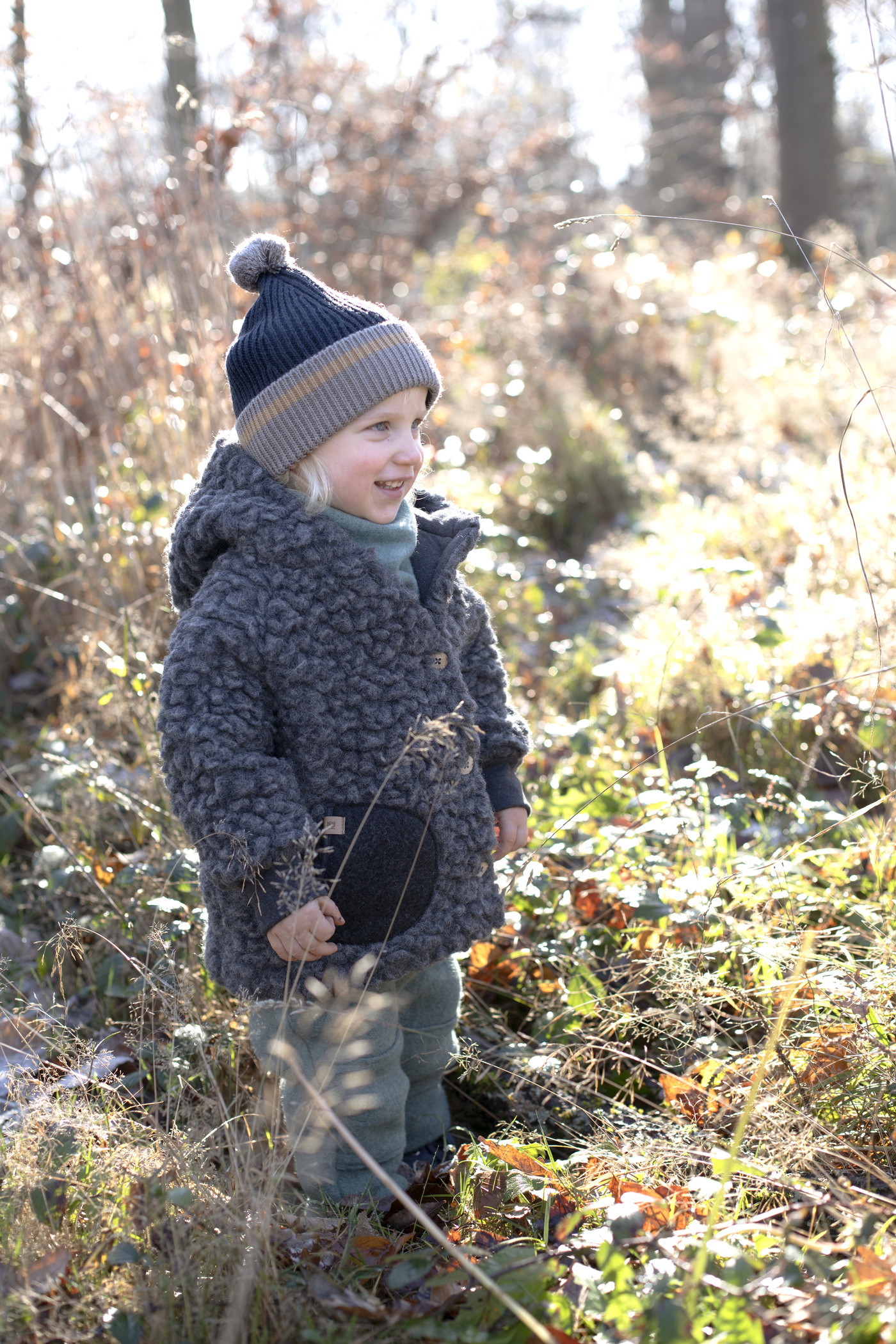 Der dichte, strapazierfähige Walkstoff hält angenehm warm und macht jedes Abenteuer mit- ob auf dem Spielplatz, im Wald oder auf dem Weg zur Kita.