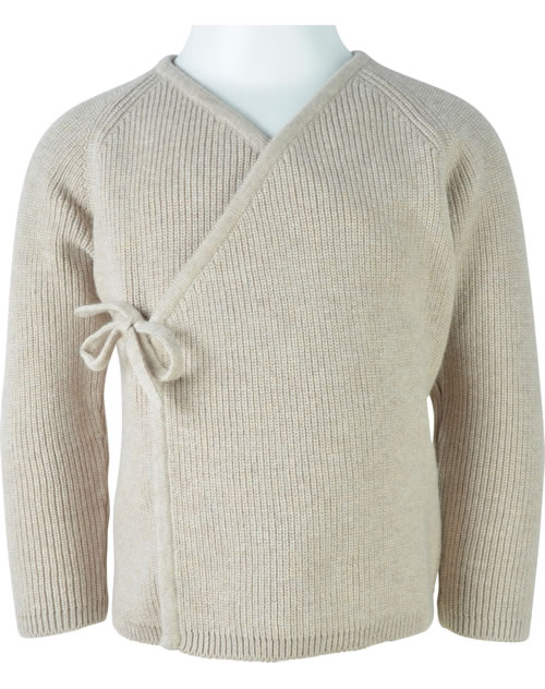 Puri Organic Baby-Wickeljacke Kimono Perlfangstrick aus Bio-Baumwolle/Seide - Tan