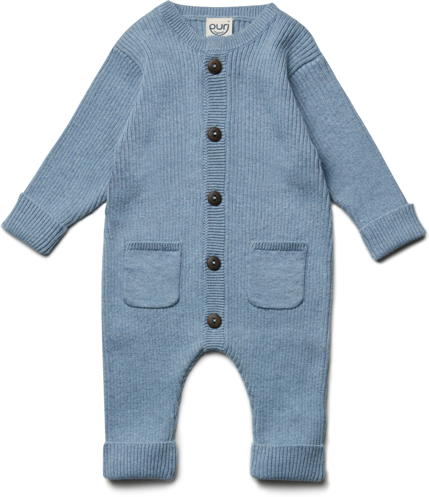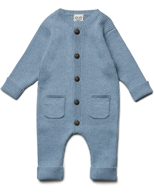 Puri Organic Baby-Strickoverall aus Bio-Baumwolle/Schurwolle - Rauchblau