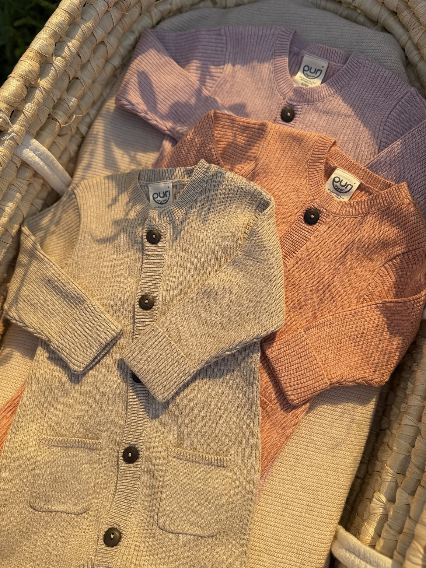 Der Anzug aus tollem Rippenstrick ist dank seiner natürlichen Materialien kuschelig weich zur empfindlichen Kinderhaut.