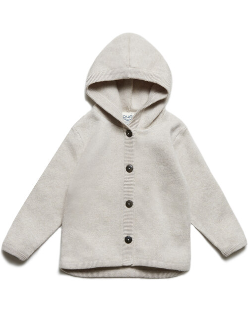 Diese kuschelige Strickjacke mit mit süßer Kapuze aus einer hochwertigen Materialmischung aus zertifizierter Bio-Baumwolle und Schurwolle ist ein wunderschöner und idealer Begleiter für die kühlen Tage im Jahr.