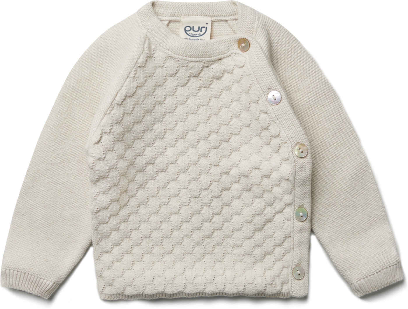 Puri Organic Kimono-/Pullover im Ajourstrick aus Bio-Baumwolle/Seide - Ecru