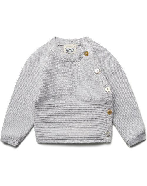 Dieser wunderbar weiche und anschmiegsame Wickel-Strickpulli im wunderschönen Krausstrick ist ein tolles und nachhaltiges Kleidungsstück für die Baby-Ausstattung.