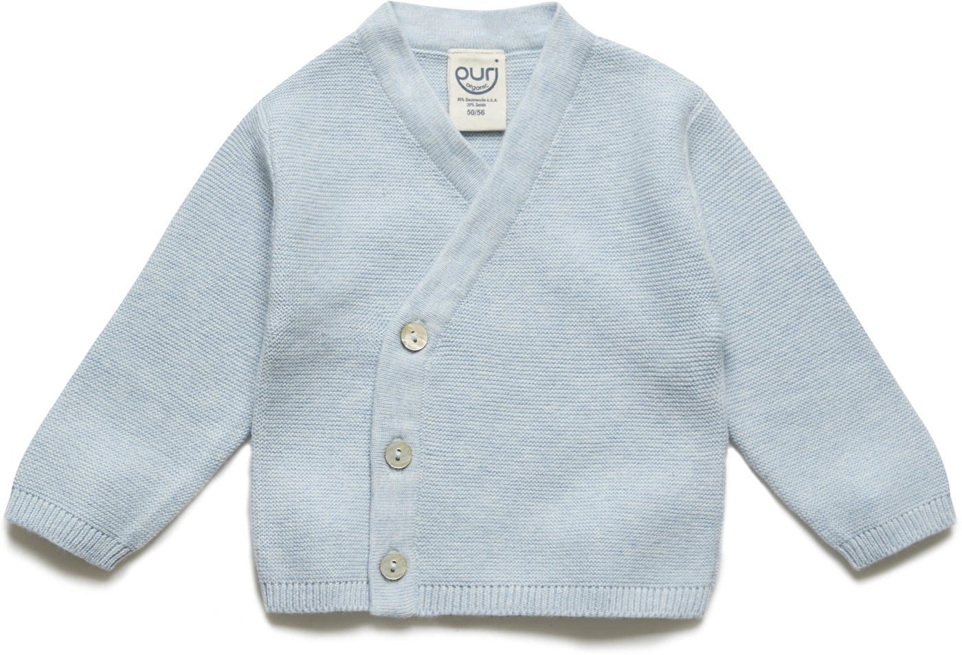 Puri Organic Krausstrick-Wickeljacke/Kimono aus Bio-Baumwolle/Seide - Hellblau