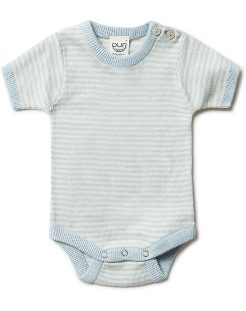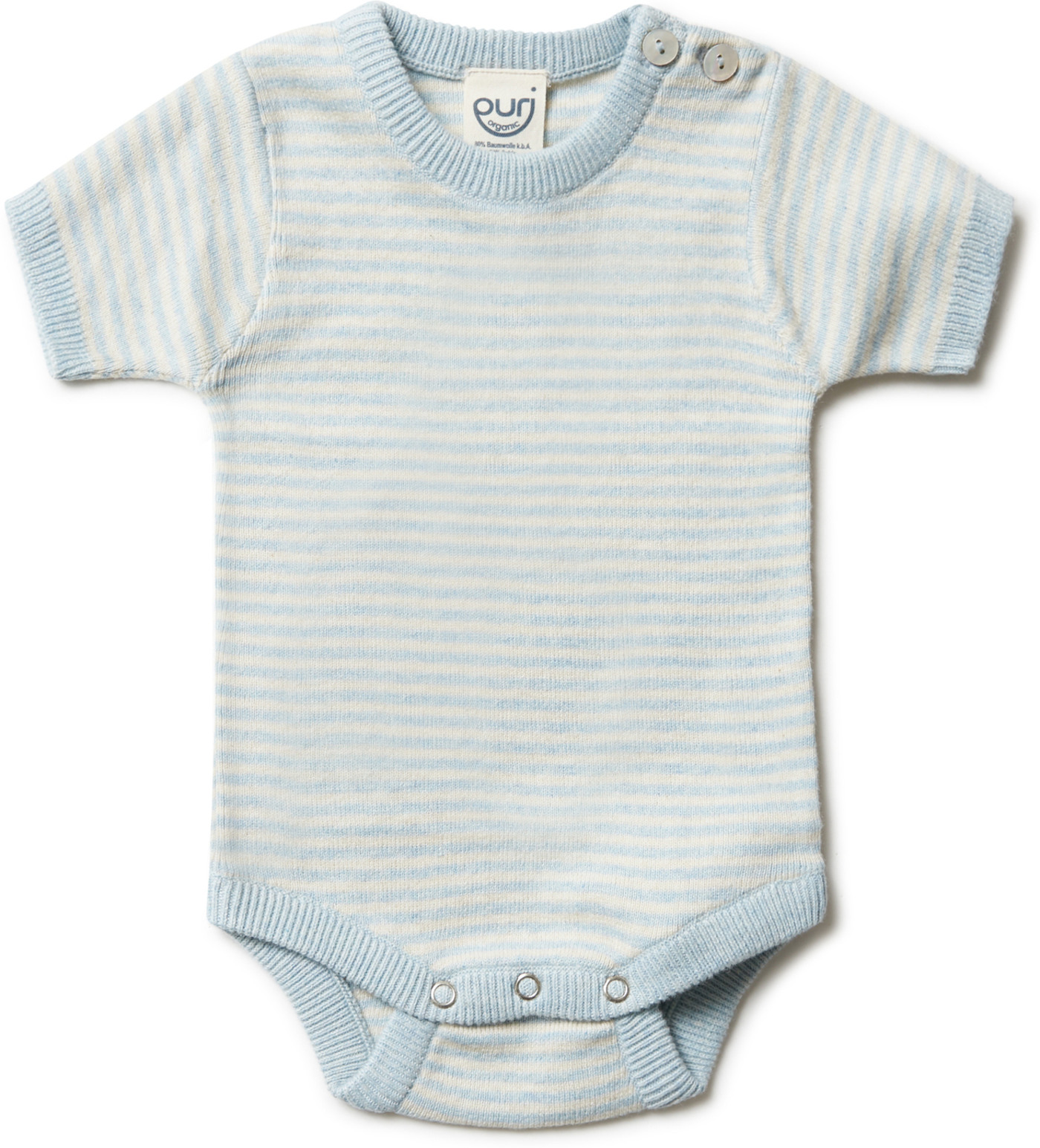 Puri Organic Kurzarmbody Ringel aus Bio-Baumwolle/Seide - Hellblau/Natur
