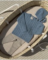 Pflegehinweise: Waschbar bei 30°C im Woll-/Handwaschgang. In feuchtem Zustand in Form ziehen und liegend trocknen, damit die Kleidungsstücke formstabil und lange schön bleiben.
