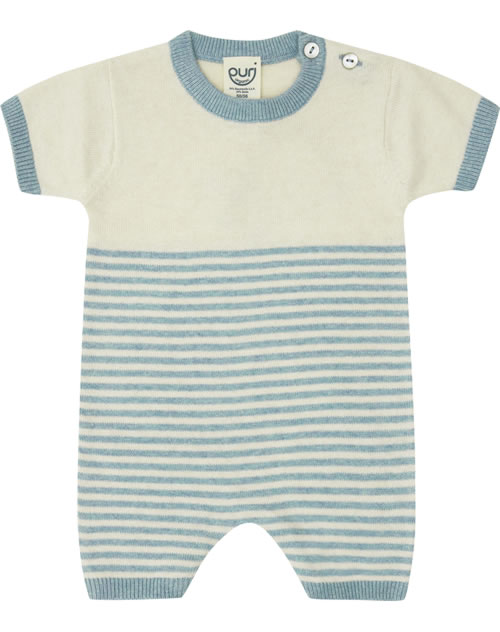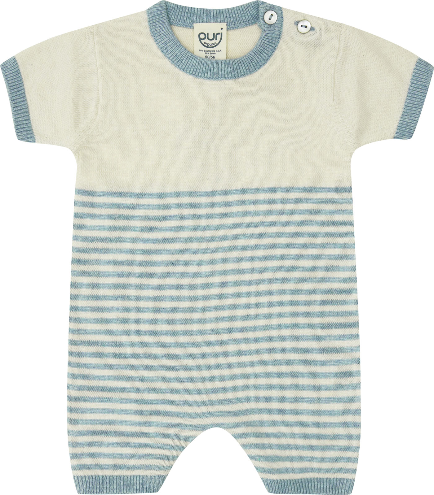 Puri Organic Strampler kurz Ringel dusty blue/natur SI14 GOTS