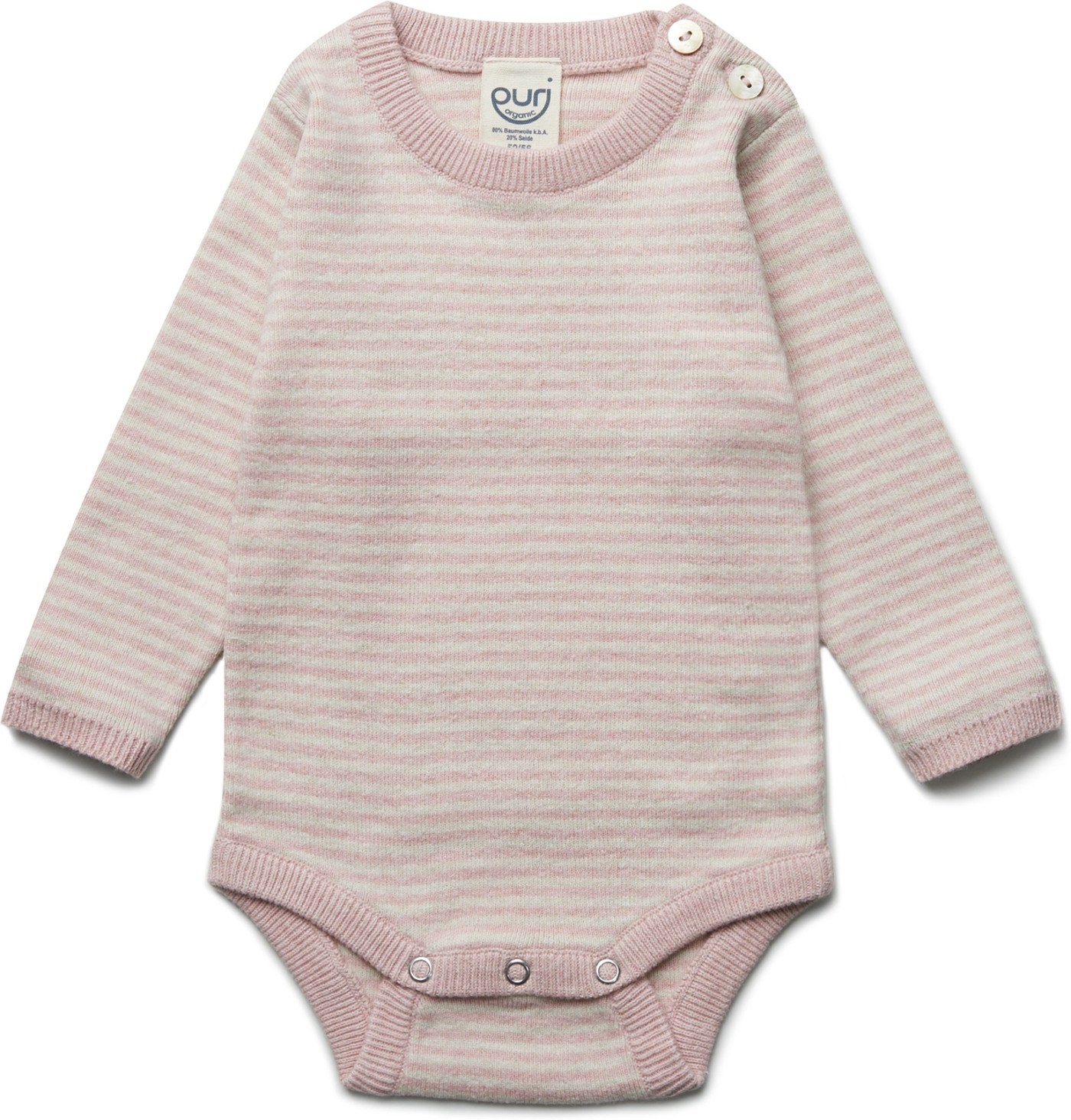 Dieser fein gestrickte Langarmbody im Ringel-Design besteht aus