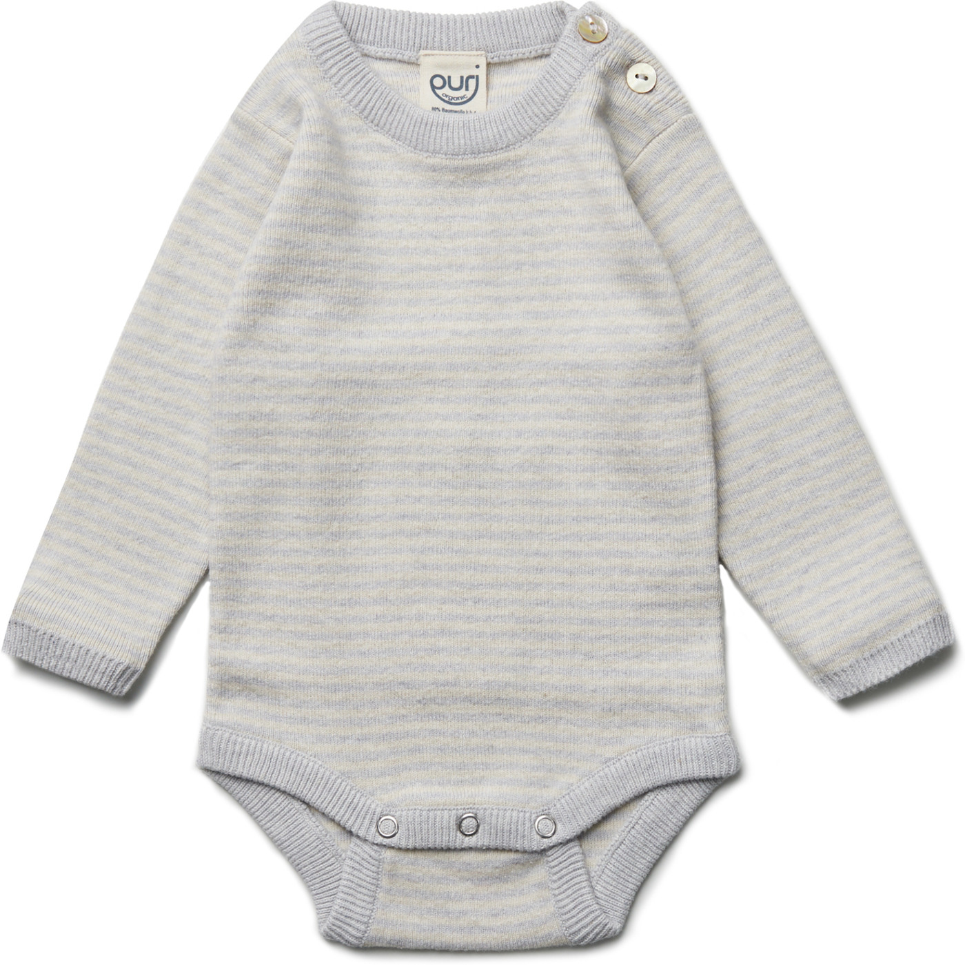Puri Organic Strick-/Langarmbody aus Bio-Baumwolle/Seide - Silbergrau/Ecru