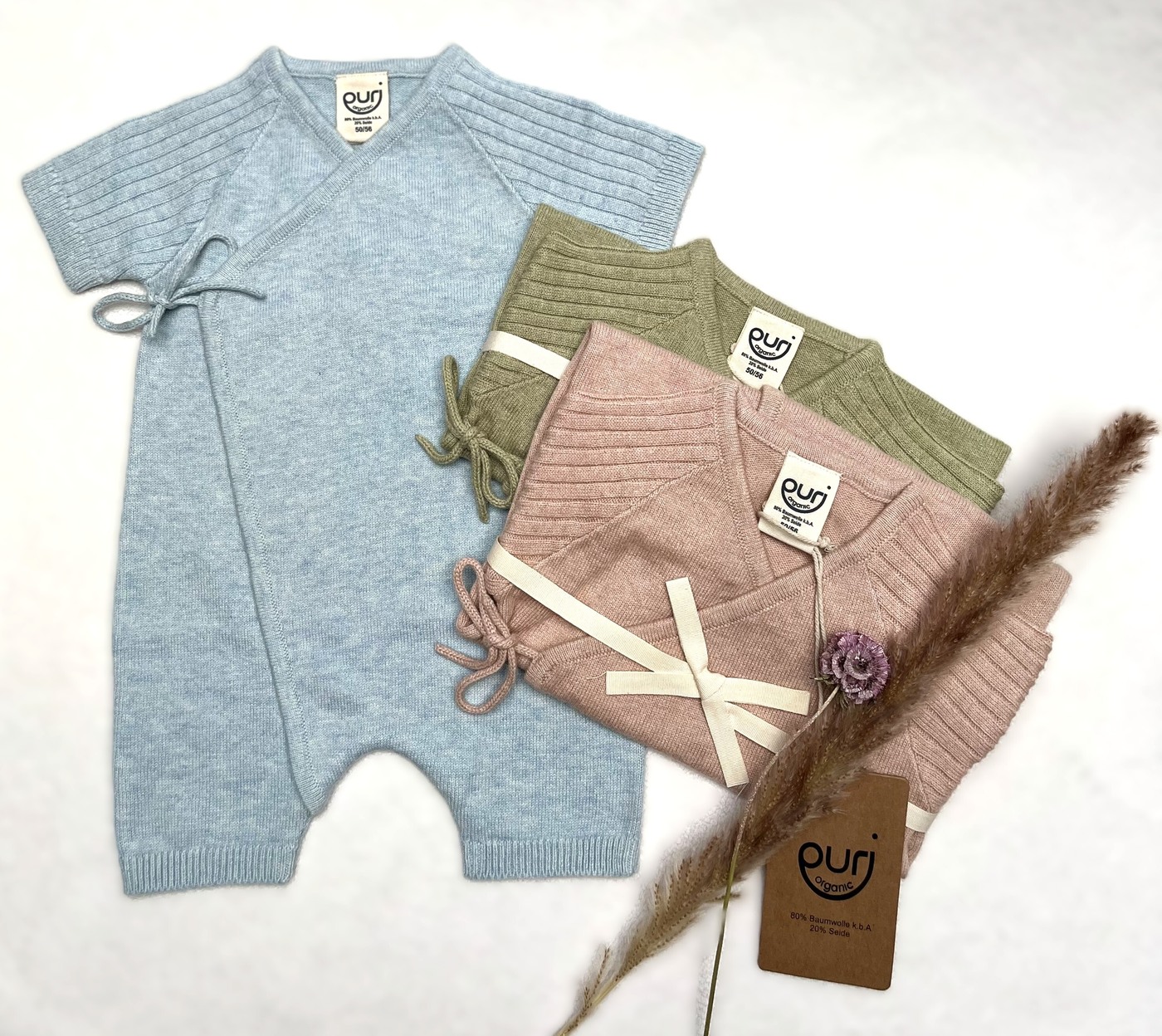 Puri Organic Strick-Wickeloverall aus Bio-Baumwolle/Seide - Hellblau