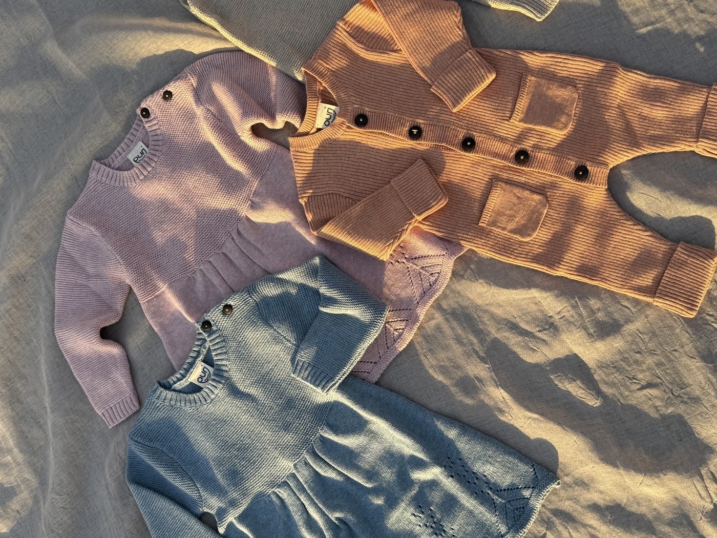 Pflegehinweise: Waschbar bei 30°C im Woll-/Handwaschgang. In feuchtem Zustand in Form ziehen und liegend trocknen, damit die Kleidungsstücke formstabil und lange schön bleiben.