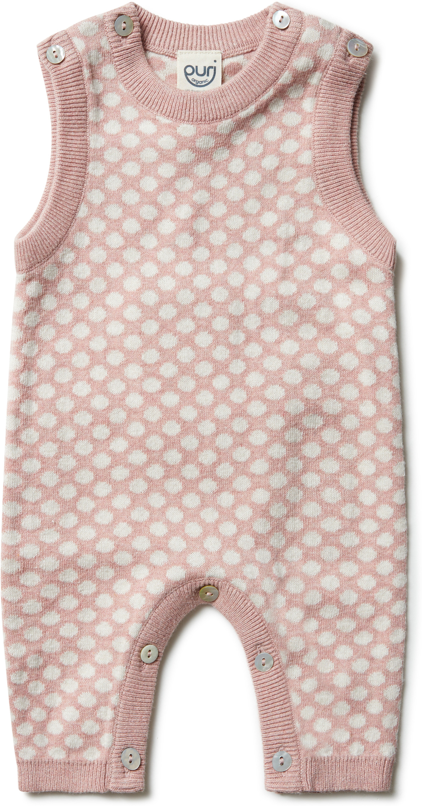 Puri Organic Strickstrampler Tupfen aus Bio-Baumwolle/Seide - Misty Rose/Natur
