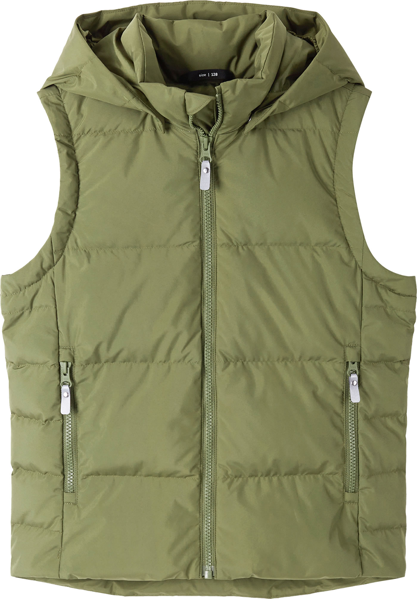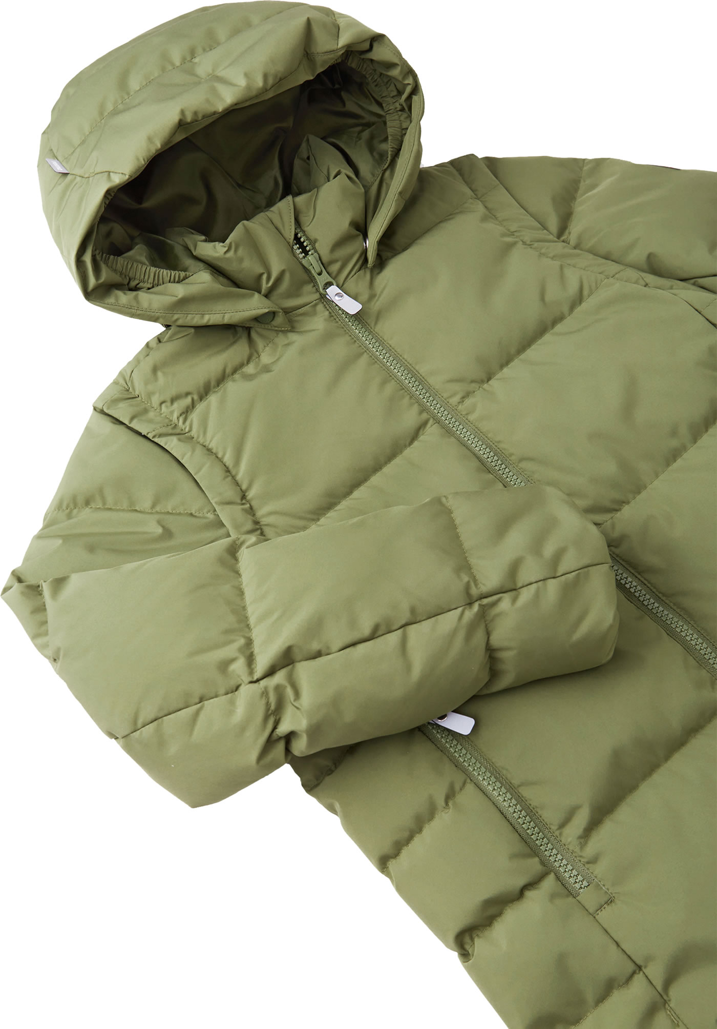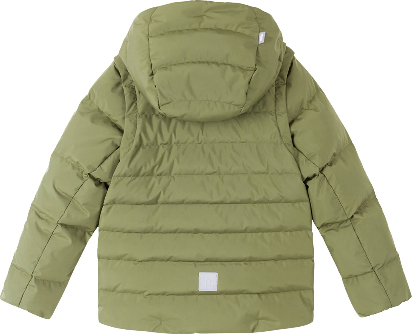 Kurz geschnittene 2in1 Jacke POROSEIN von REIMA mit abknöpfbarer Kapuze. Die Jacke ist ideal für kühle Wintertage und hält dank der Daunenfüllung auch bei kalten Temperaturen mollig warm. Der Clou ist, dass sie auch als Weste getragen werden kann. Die Ärmel lassen sich einfach abzippen. Reflektierende Elemente sorgen für eine gute Sichtbarkeit im Dunkeln und die beiden Reißverschlusstaschen bieten Platz für kleine Schätze. Die Rückseite ist etwas länger geschnitten.
