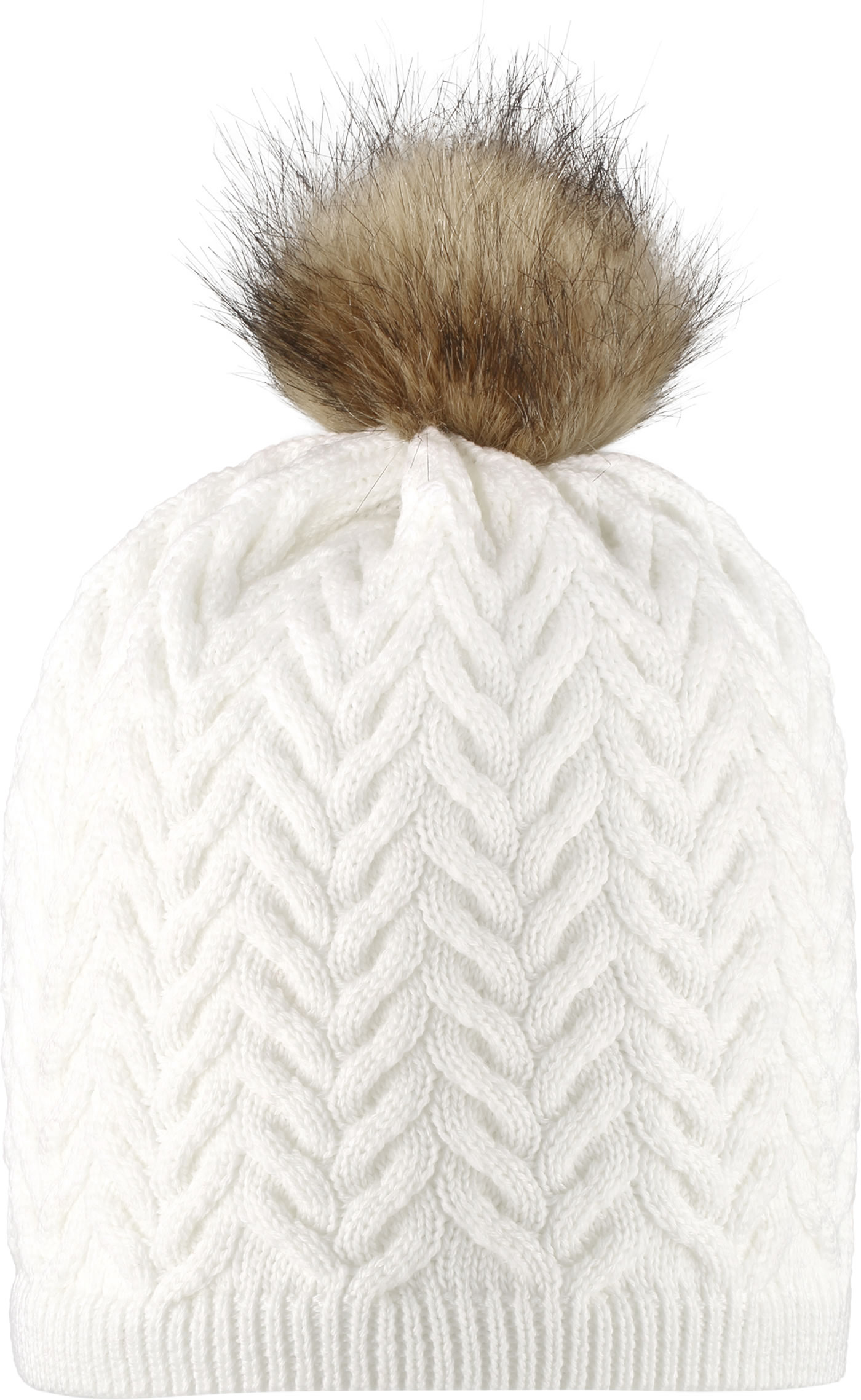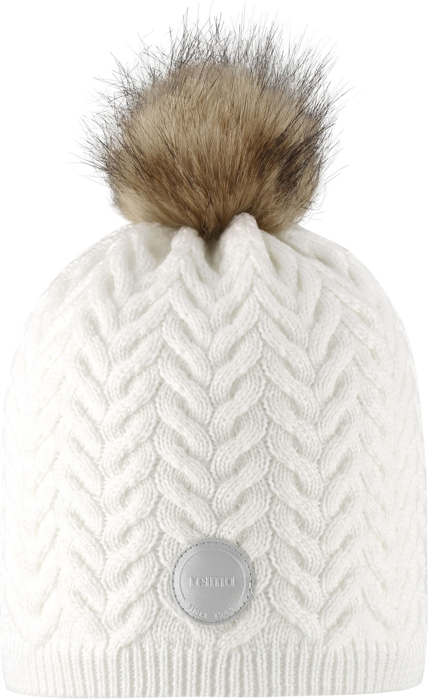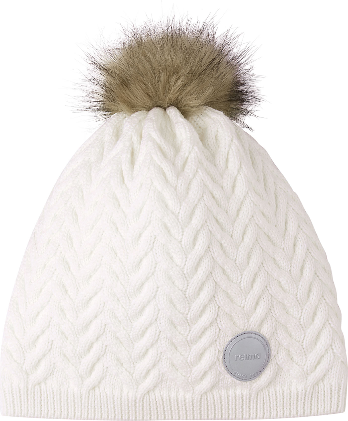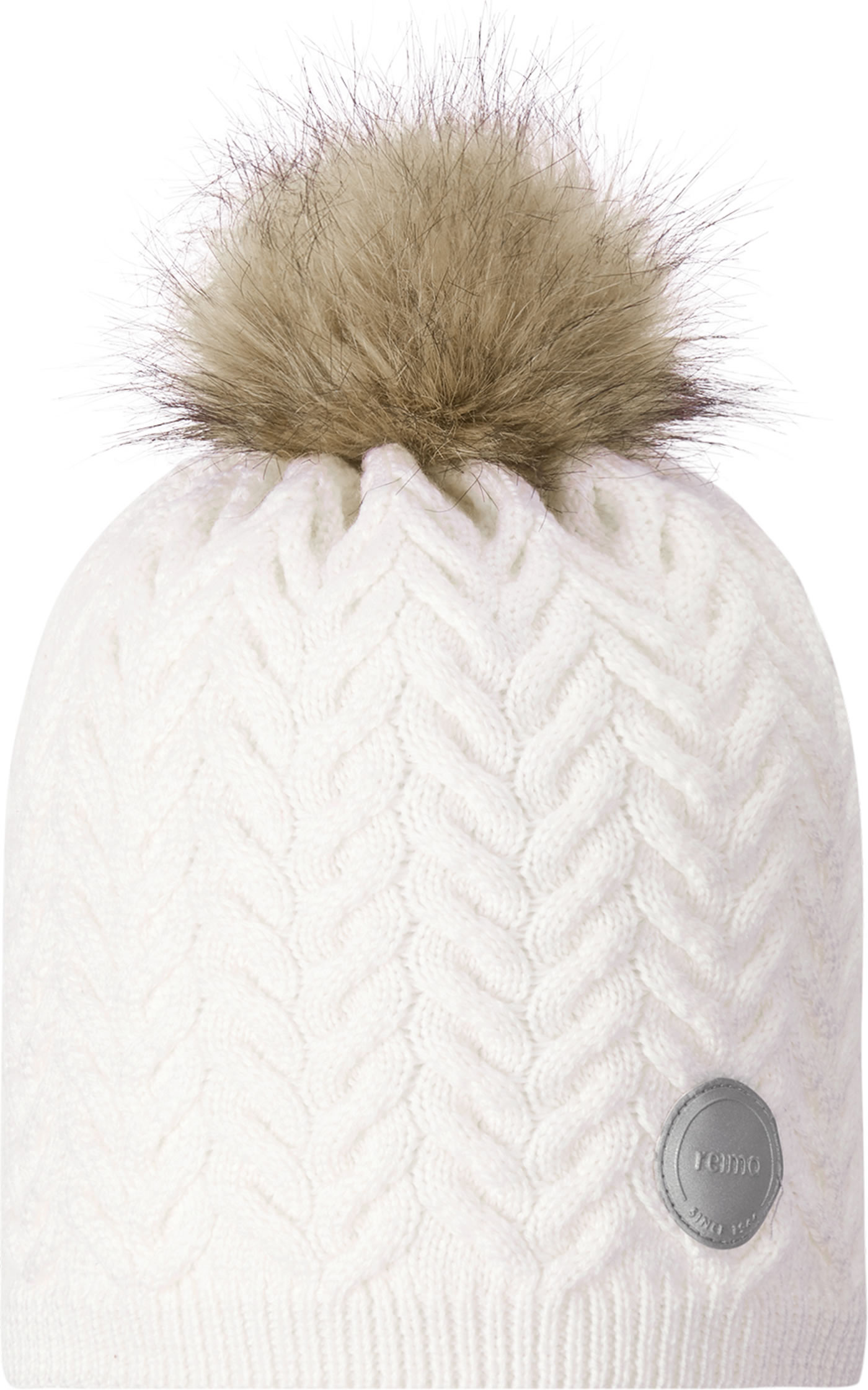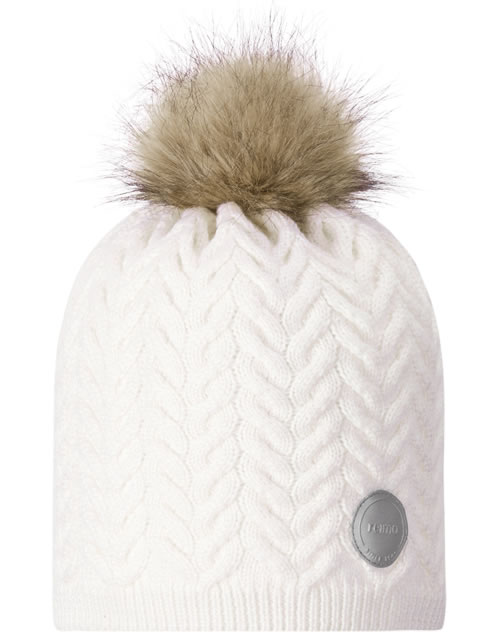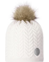 Reima Kinder Wollmütze mit Fell-Bommel Strickmuster TALVIO white