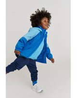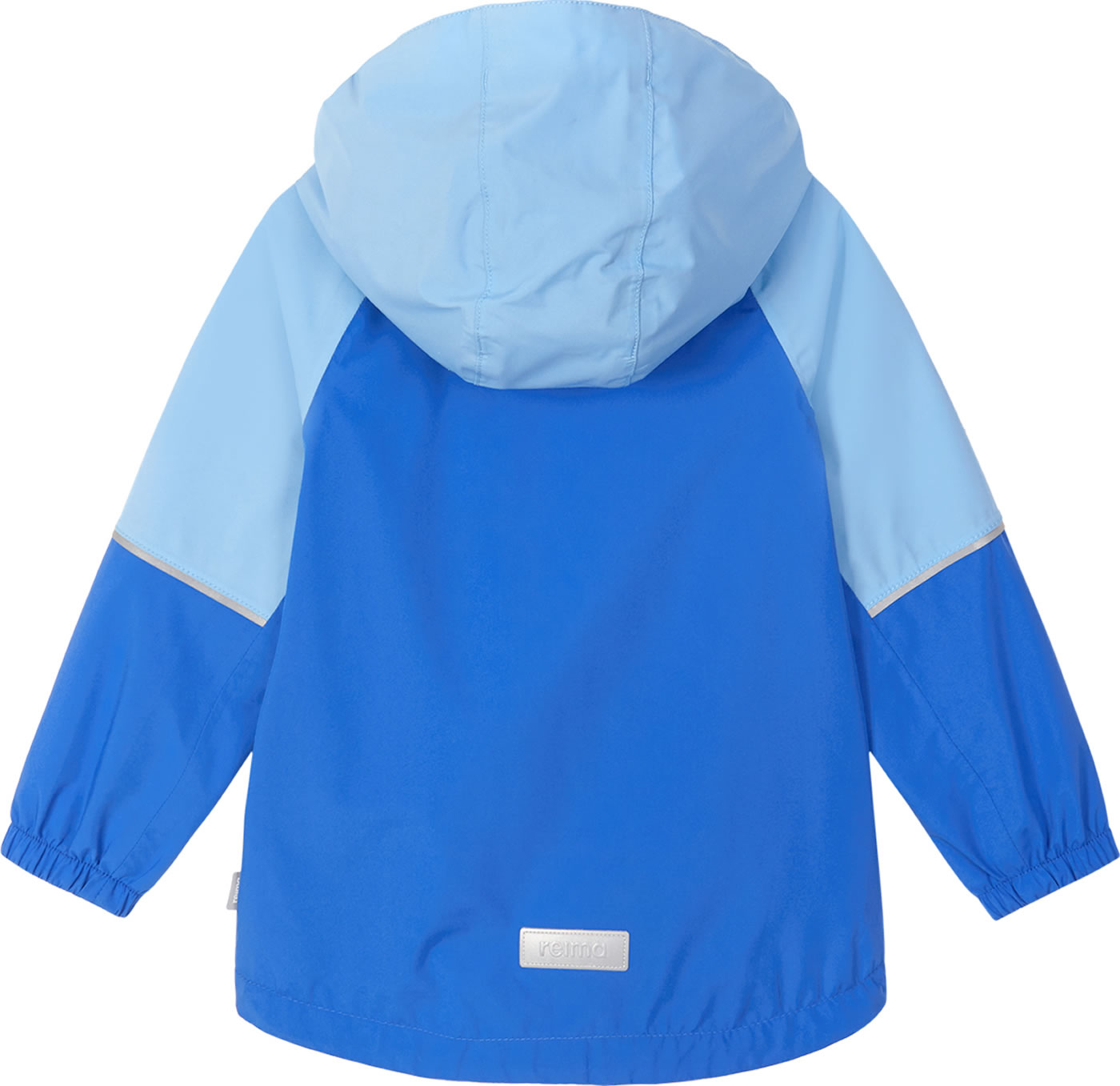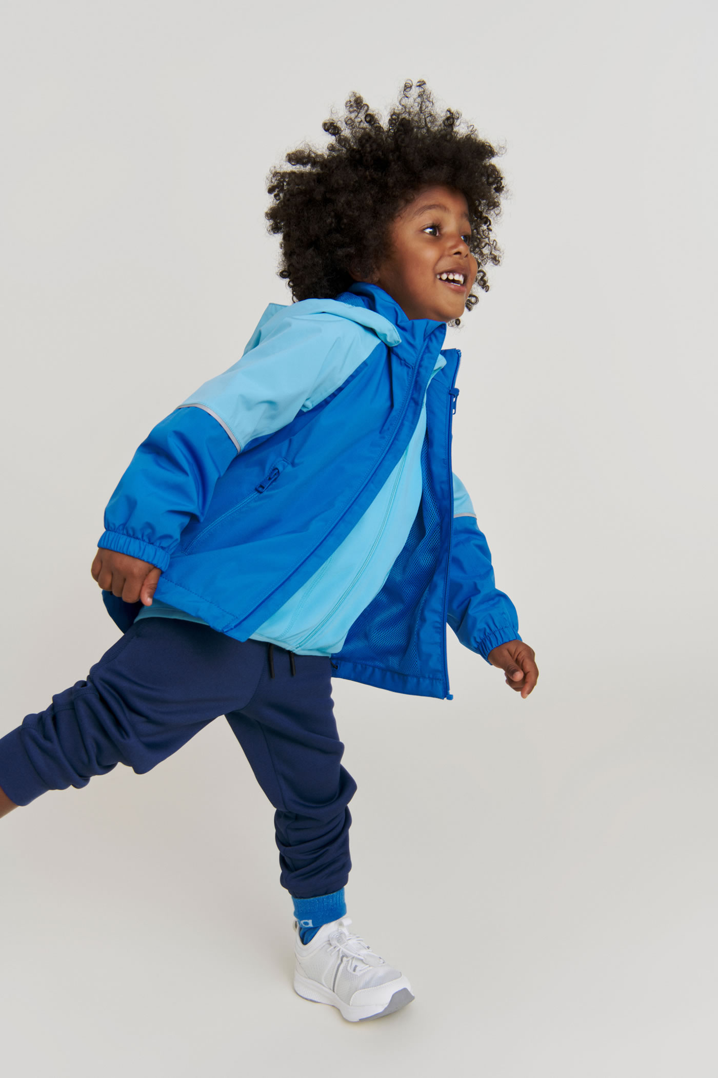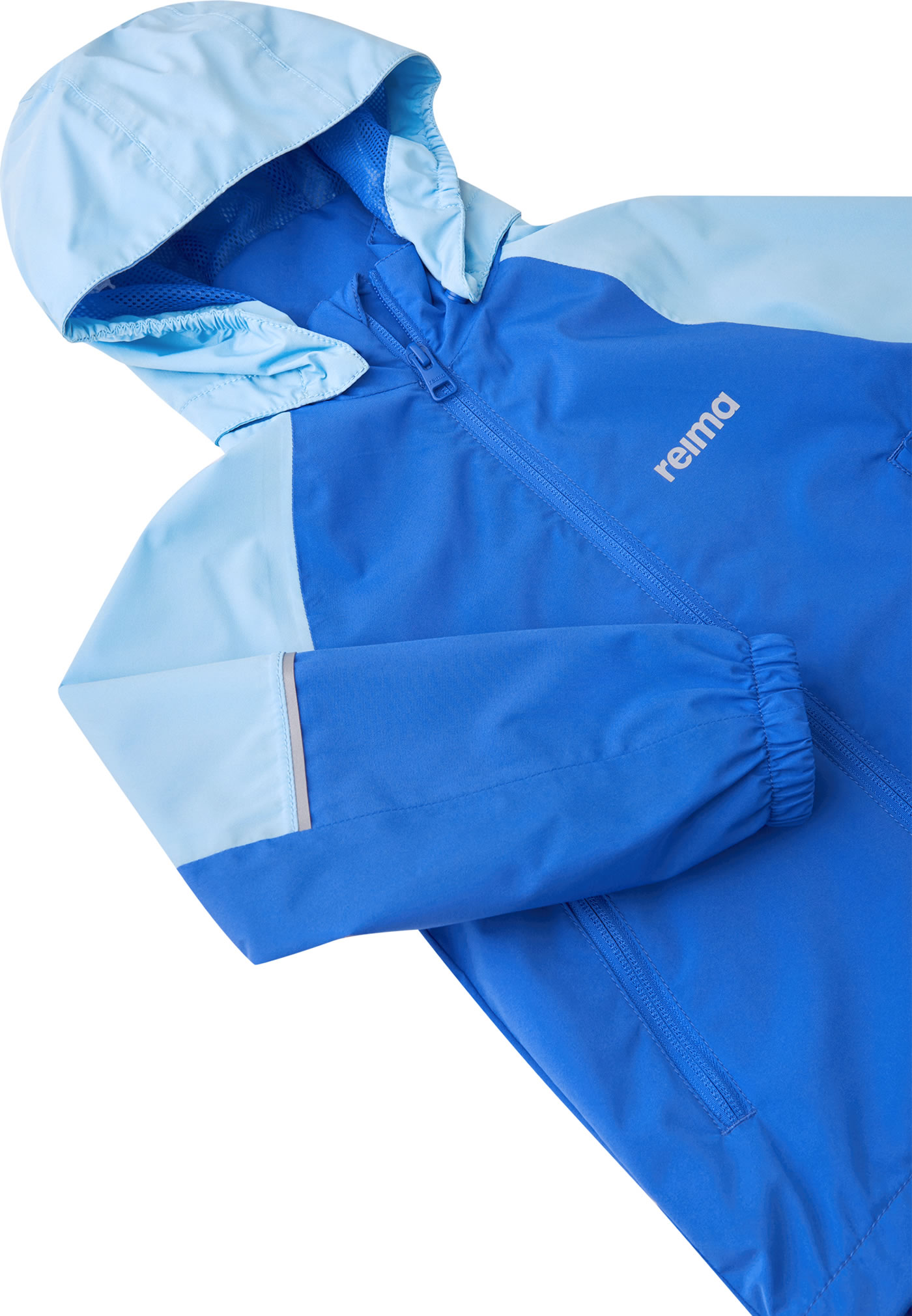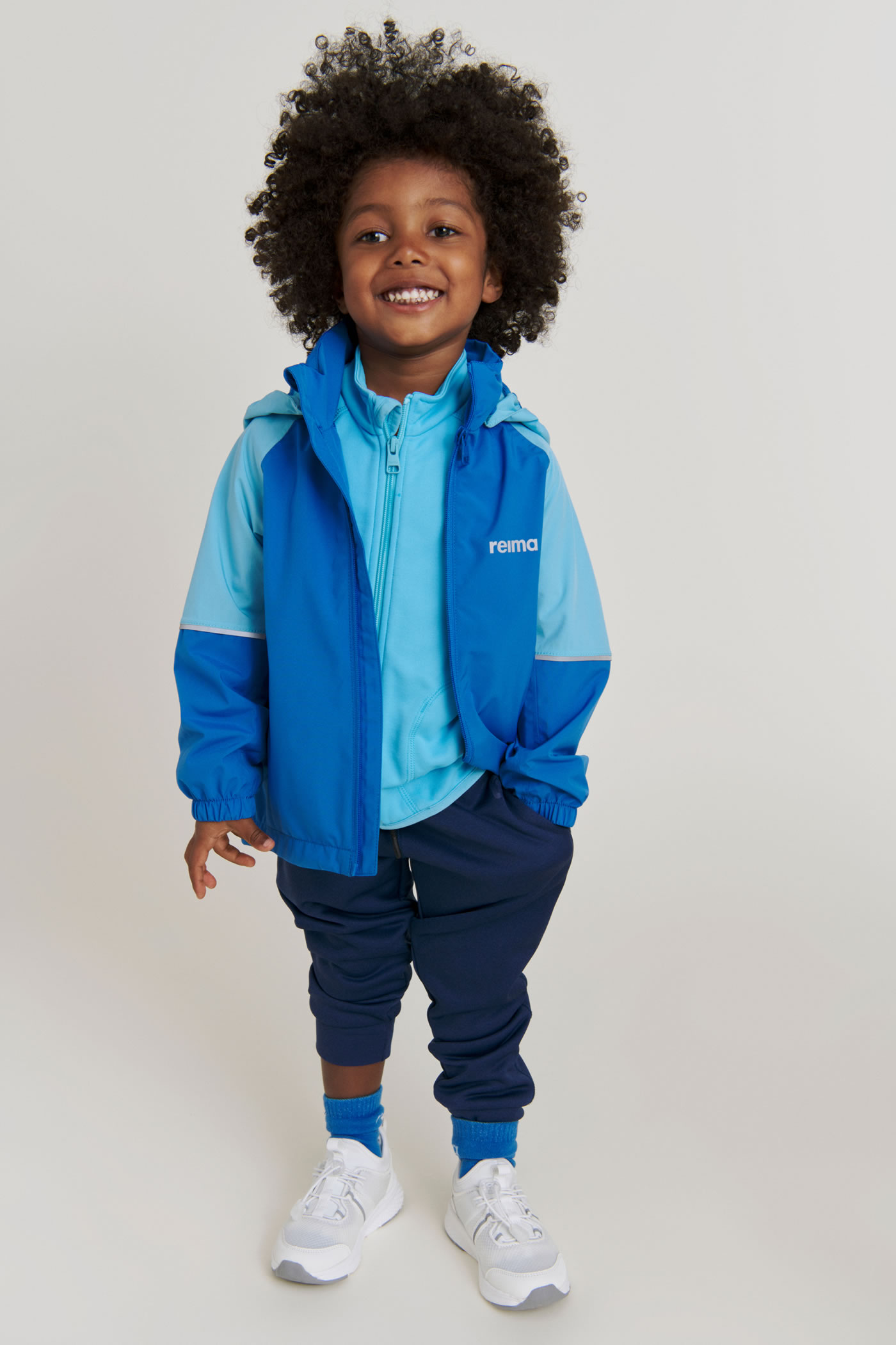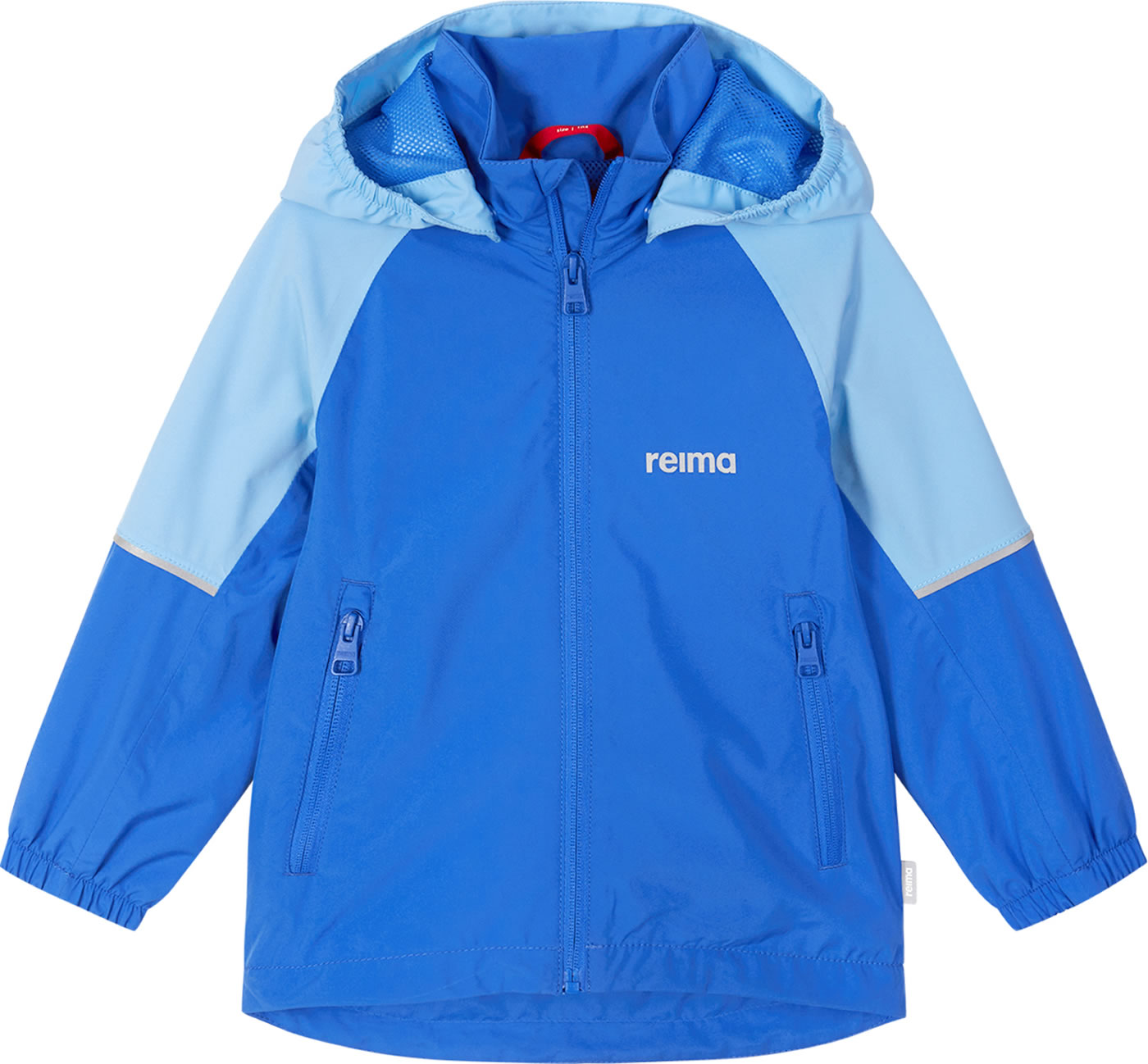 Die leichte Outdoorjacke FISKARE von REIMA ist ein unverzichtbarer Begleiter für die Übergangszeit und an regnerischen Tagen. Wasser- und schmutzabweisend, schnelltrocknend, atmungsaktiv sowie waschbeständig ist die praktische Jacke, die auch noch ein zeitloses und sportliches Design hat. Die Kapuze lässt sich abknöpfen und der Saum der Jacke lässt sich in der Weite verstellen. Gummibündchen an den Ärmeln sorgen für einen guten Sitz sodass nichts verrutscht. Auf der Vorderseite befinden sich zwei Reißverschluss-Taschen, in denen sich die wichtigsten Kleinigkeiten verstauen lassen. Gefüttert ist das Kleidungsstück mit einem Netzfutter. Reflektierende Details sorgen für eine gute Sichtbarkeit an regnerischen Tagen.