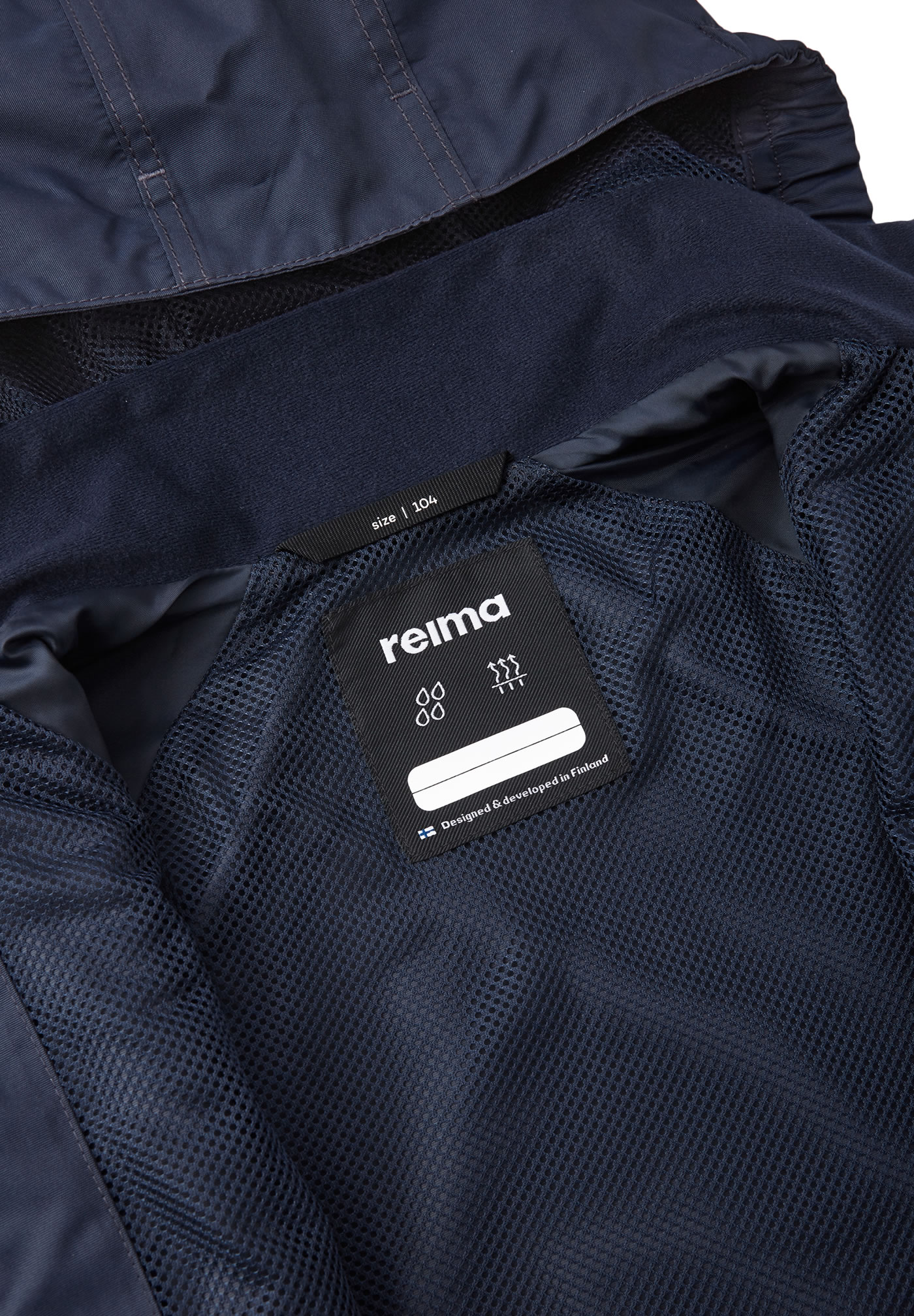 Klassische atmungsaktive, wasser- und winddichte Kinderjacke für den Übergang von REIMA. Zwei Reißverschlusstaschen.