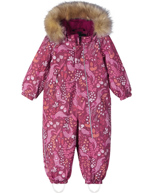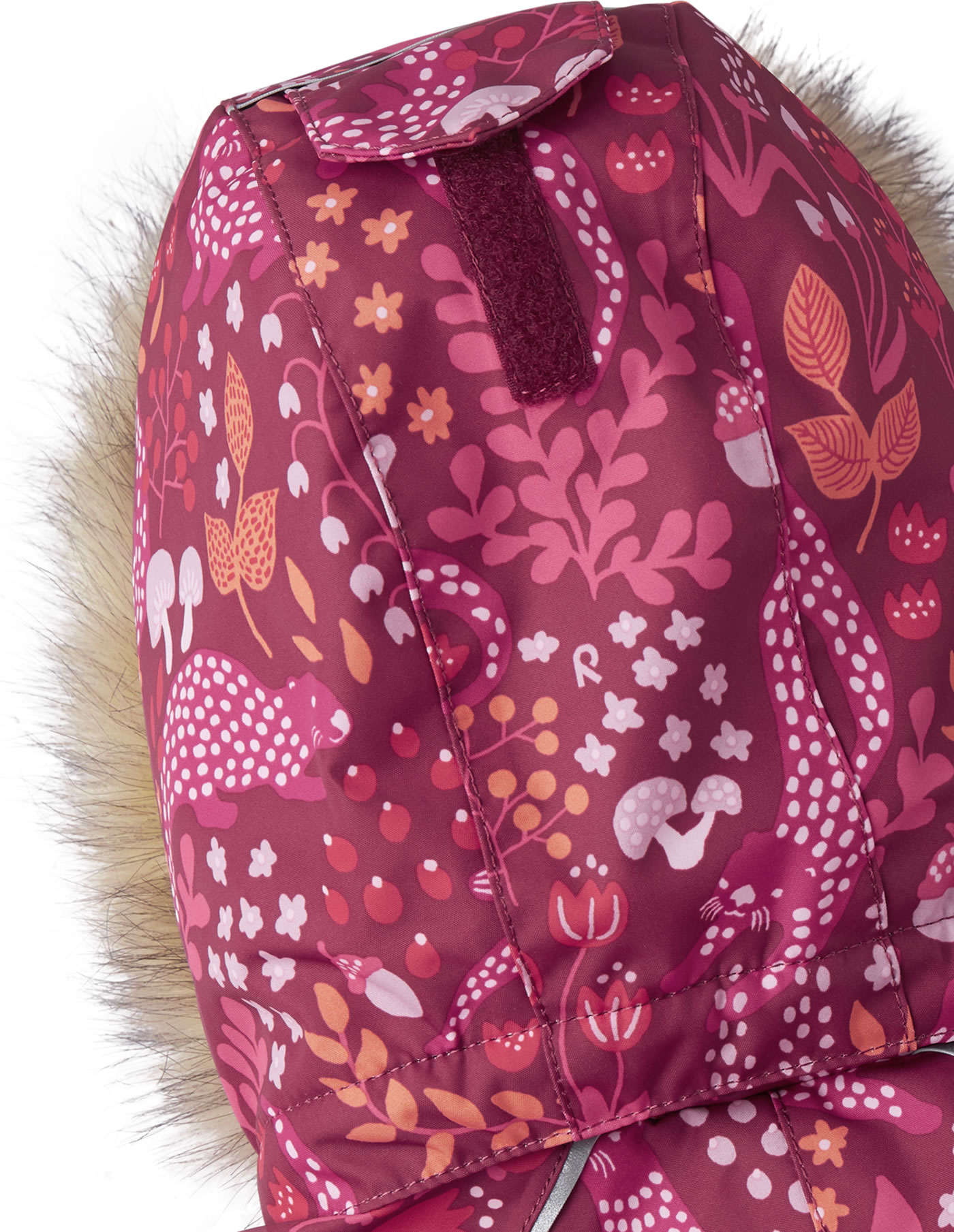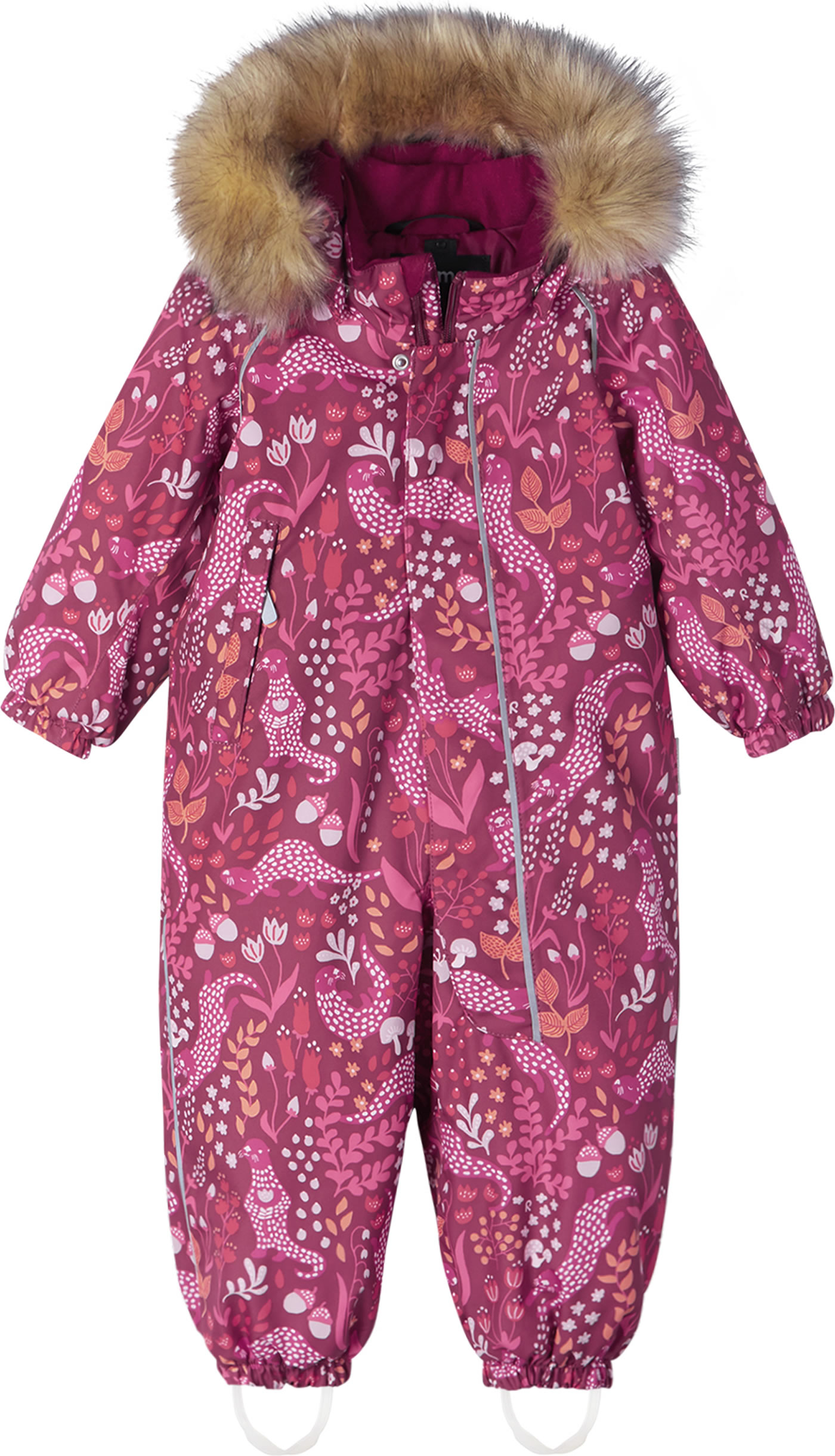 Ausgezeichneter Winter-Overall LAPPI aus teilweise recyceltem Material von REIMA mit Otter-Muster für Kleinkinder! Die Hauptnähte des Overalls aus wasserdichtem Material sind versiegelt. Der isolierte Hosenboden wärmt zusätzlich beim Spielen im Schnee. Die Weite kann in der Taille reguliert werden. Außerdem besitzt er elastische Bündchen an den Beinabschlüssen. Die mit Druckknöpfen befestigte abnehmbare Kapuze schützt vor kaltem Wind und löst sich schnell, wenn sie sich irgendwo verfängt. Der abnehmbare Kunstpelz-Besatz ist mit einem Reißverschluss befestigt. Die abnehmbaren Fußschlaufen aus Silikon verhindern das Hochrutschen. Reflektierende Elemente sorgen für eine bessere Sichtbarkeit im Dunkeln. Der lange Reißverschluss erleichtern das An- und Ausziehen.