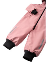 Der recyclebare Outdoor-Overall ist komplett wasserdicht da alle Nähte versiegelt sind. Außerdem besitzt er elastische Bündchen an Kapuze, Ärmeln und den Beinabschlüssen. Die mit Druckknöpfen befestigte abnehmbare Kapuze schützt vor kaltem Wind und löst sich schnell, wenn sie sich irgendwo verfängt. Reflektierende Elemente sorgen für eine bessere Sichtbarkeit im Dunkeln.