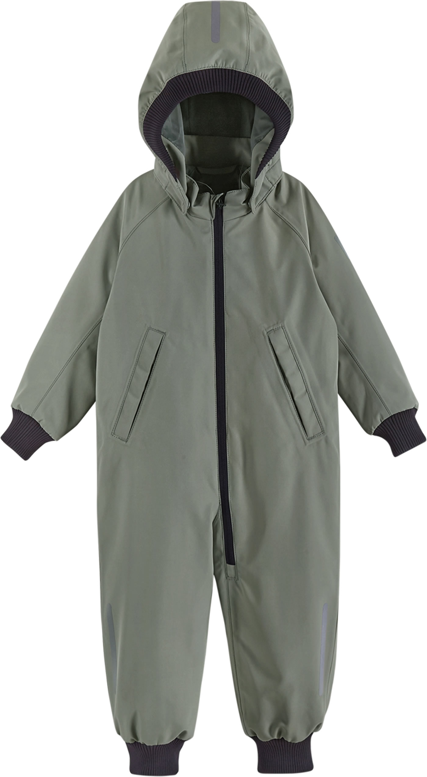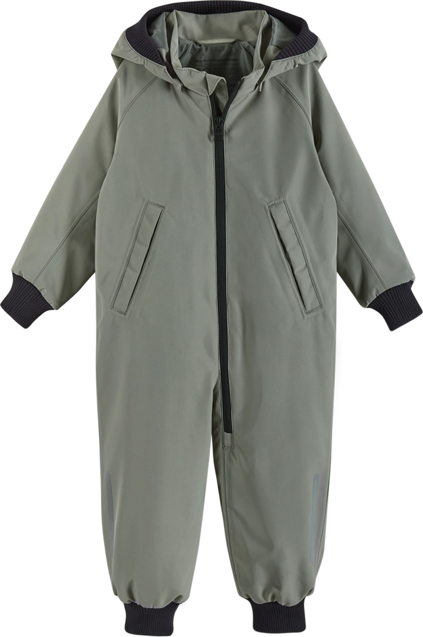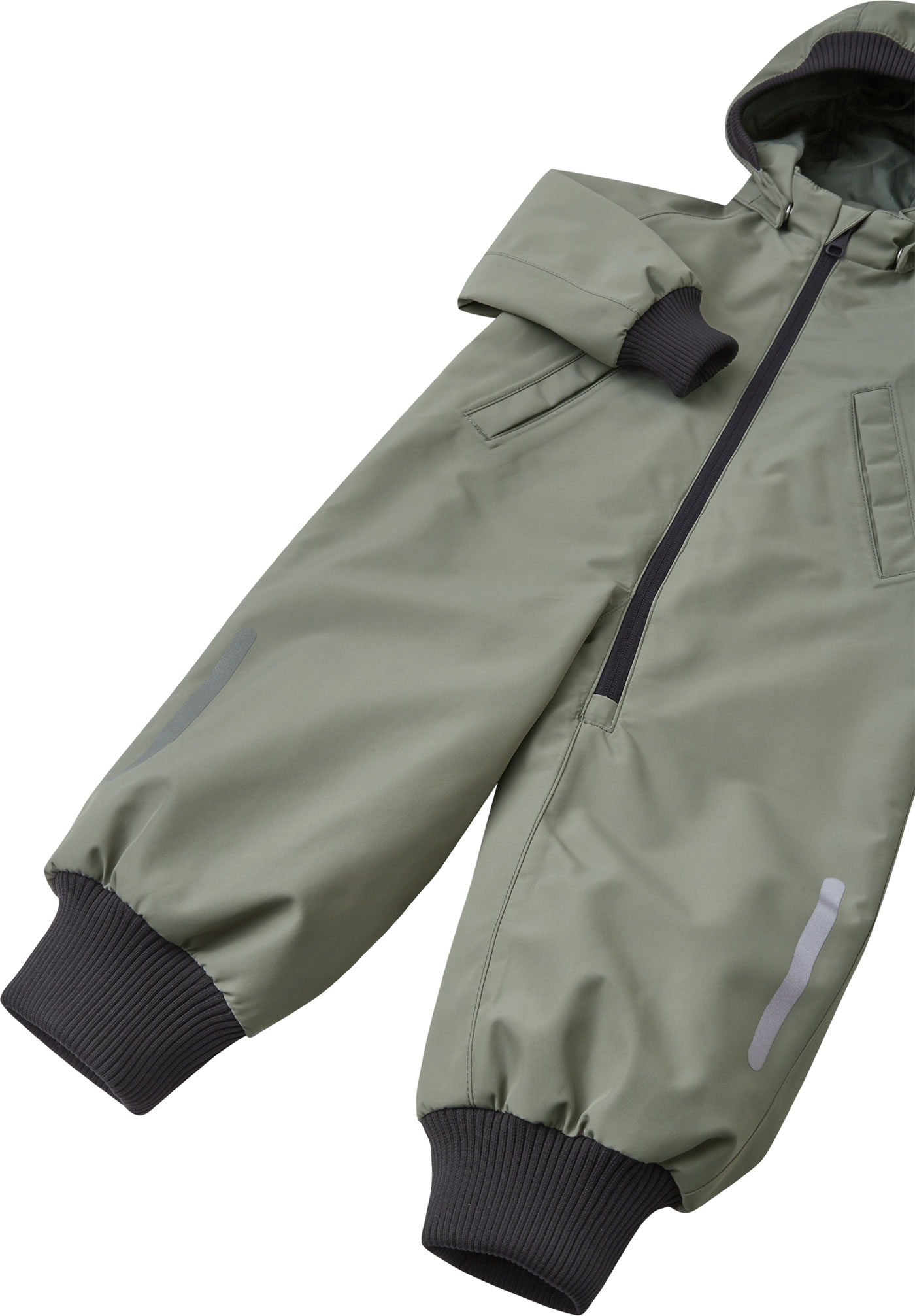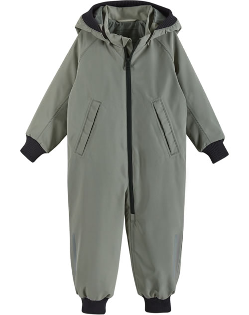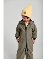 Der recyclebare Outdoor-Overall ist komplett wasserdicht da alle Nähte versiegelt sind. Außerdem besitzt er elastische Bündchen an Kapuze, Ärmeln und den Beinabschlüssen. Die mit Druckknöpfen befestigte abnehmbare Kapuze schützt vor kaltem Wind und löst sich schnell, wenn sie sich irgendwo verfängt. Reflektierende Elemente sorgen für eine bessere Sichtbarkeit im Dunkeln.