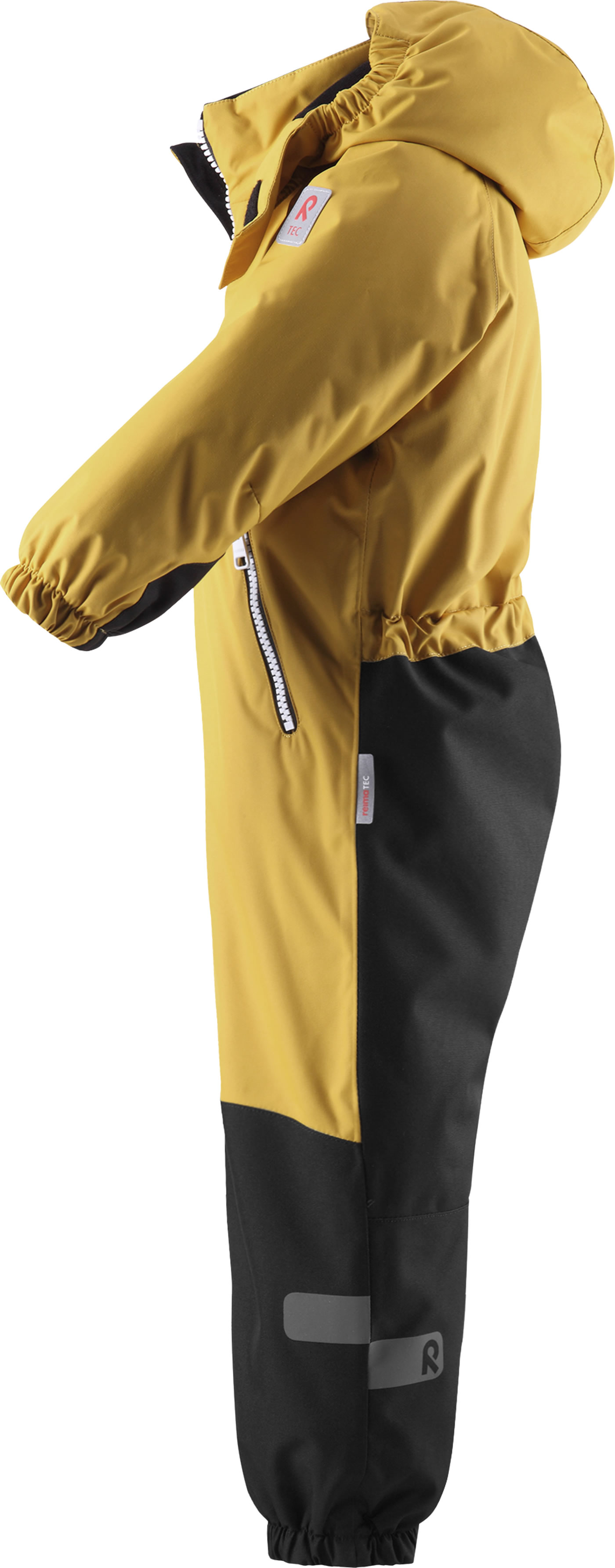 Wasserdichter und haltbarer Reimatec-Winteroverall FINN für Jungen mit versiegelten Nähten. Der winddichte und atmungsaktive Overall hält Ihr Kind warm und trocken, ohne dass es schwitzt. Die Weite kann in der Taille reguliert werden. Außerdem besitzt er elastische Bündchen an den Beinabschlüssen. Die abnehmbare Kapuze schützt nicht nur vor kaltem Wind, sondern ermöglicht auch gefahrloses Spielen im Freien. Die mit Druckknöpfen befestigte Kapuze löst sich schnell, wenn sie sich irgendwo verfängt. Die abnehmbaren Fußschlaufen aus Silikon verhindern das Hochrutschen. Reflektierende Elemente sorgen für eine bessere Sichtbarkeit im Dunkeln.