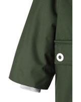 Winter-Overall für Kleinkinder, inspiriert von der REIMA-Kleidung der 70er Jahre. Alle Nähte des Schneeanzugs sind wasserdicht verschweißt und das Material ist schmutz- und wasserabweisend. Das glatte Futter erleichtert das An- und Ausziehen. Die abnehmbare, sichere Kapuze ist mit Druckknöpfen befestigt und löst sich, wenn sie irgendwo hängen bleibt. Die gerade geschnittene Hose kann innen am Bund verstellt werden, und die Fußschlaufen halten die Beinabschlüsse an Ort und Stelle. Zwei Klappentaschen und große reflektierende Details runden den Retro-Look ab.