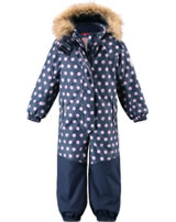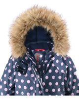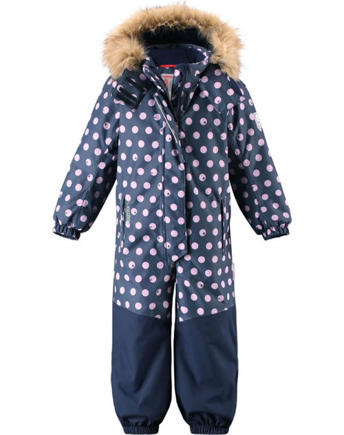 Absolut wasserdichter und haltbarer Reimatec-Winteroverall für Kinder mit versiegelten Nähten. Sehr strapazierfähige Verstärkungen an Hosenboden, Knien und Beinabschlüssen. Der winddichte und atmungsaktive Overall hält Ihr Kind warm und trocken, ohne dass es schwitzt. Die Weite kann am Bund reguliert werden. Außerdem besitzt er elastische Bündchen und Druckknöpfe zur Weitenregulierung an den Beinabschlüssen. Die abnehmbare Kapuze schützt nicht nur vor kaltem Wind, sondern ermöglicht auch gefahrloses Spielen im Freien. Sie hat einen weichen, abnehmbaren Webpelzbesatz. Die mit Druckknöpfen befestigte Kapuze löst sich schnell, wenn sie sich irgendwo verfängt. Die abnehmbaren Fußschlaufen aus Silikon verhindern, das